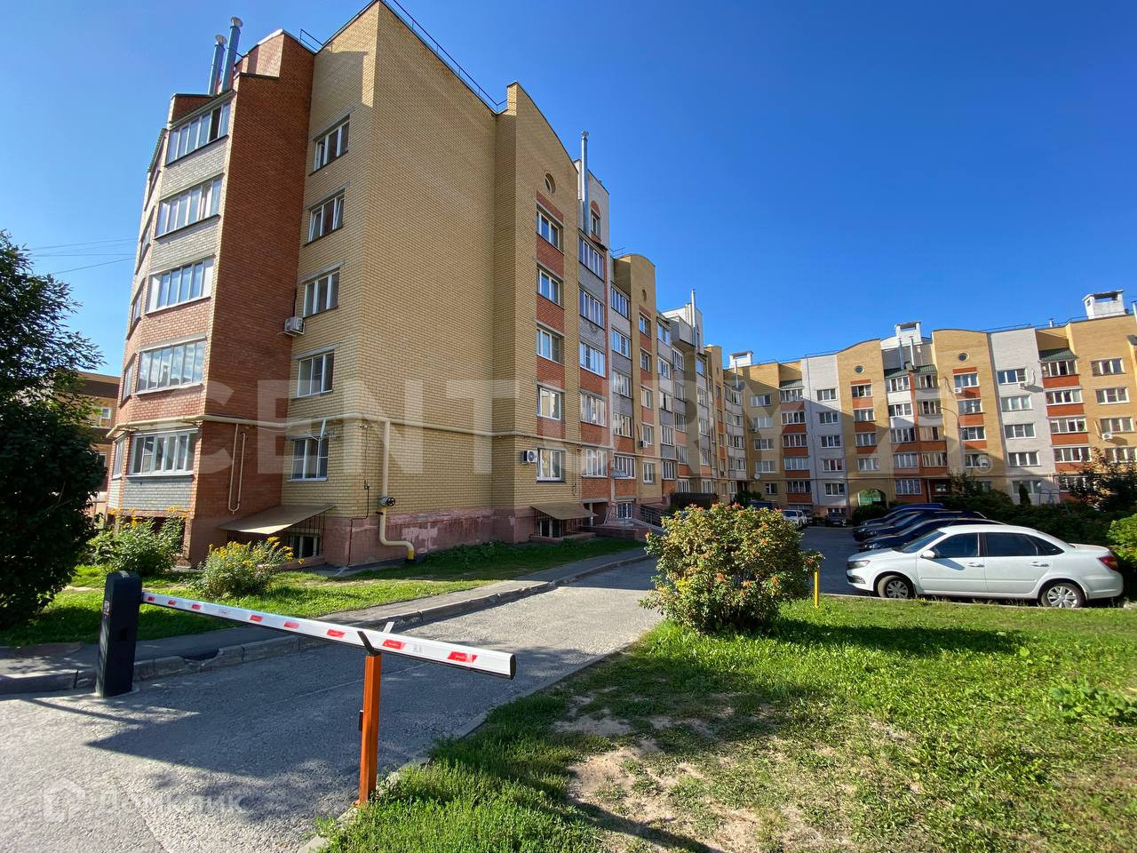 Закрытый двор, въезд огорожен шлагбаумом