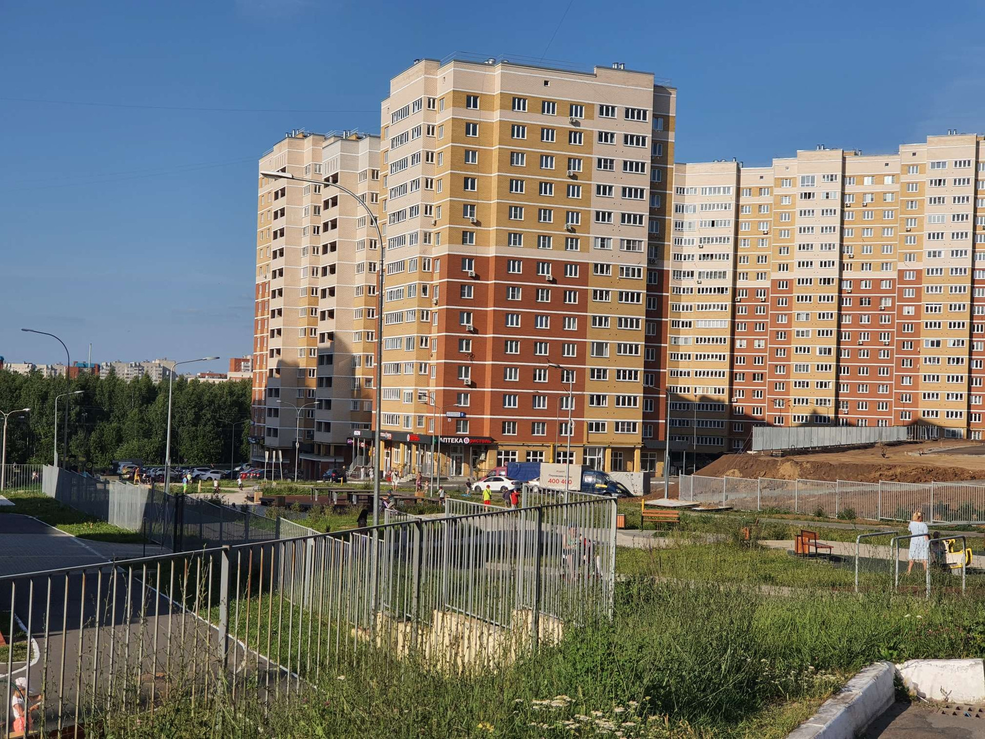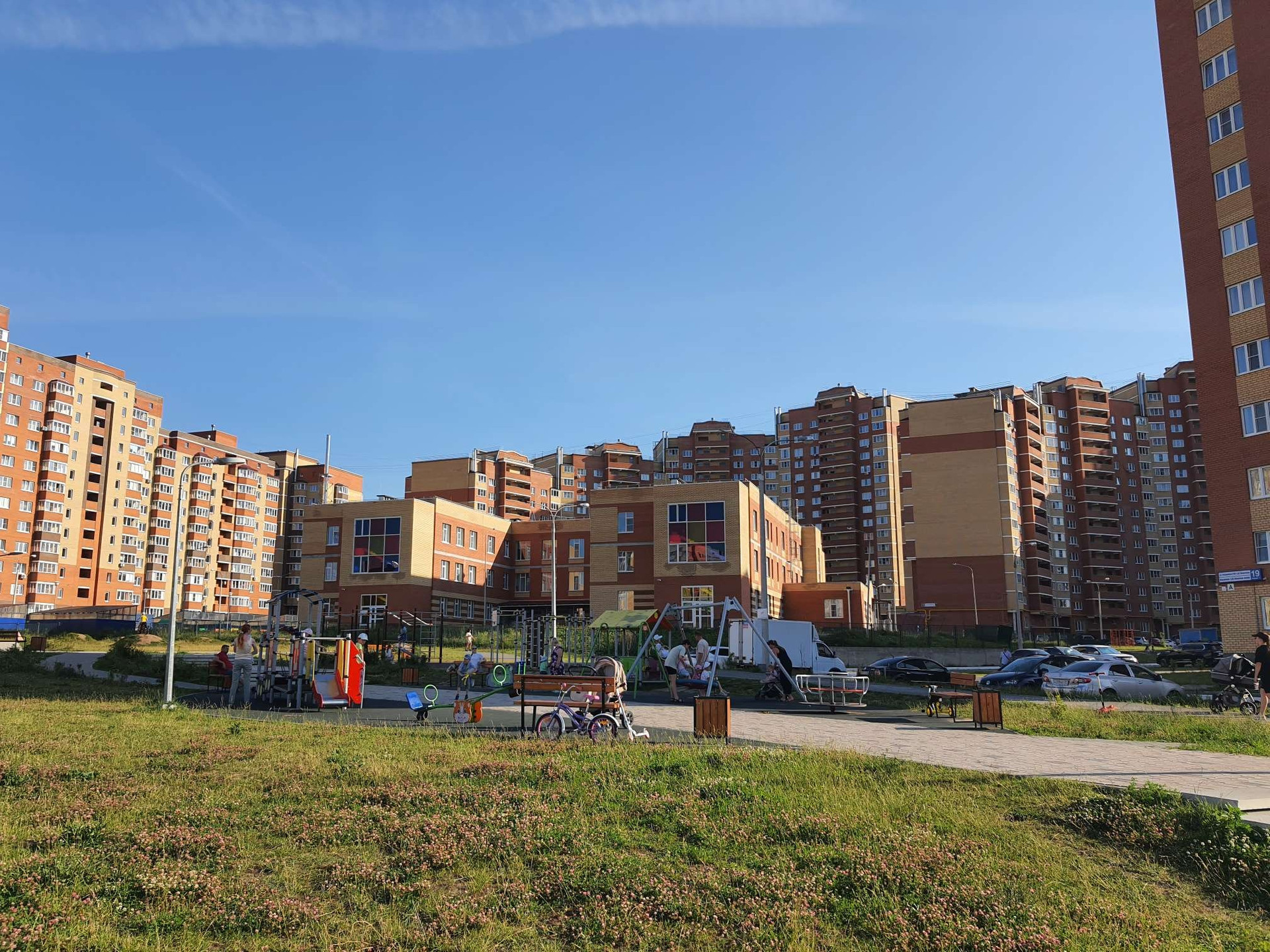 Этот район отличается развитой инфраструктурой: рядом расположены школа, детский сад, торговый центр, парк и фитнес-центр, что делает его идеальным местом для семейного проживания. Для маленьких жителей во дворе установлены детская и спортивная площадки. Также предусмотрены удобства для автомобилистов – парковка как во дворе, так и подземная.