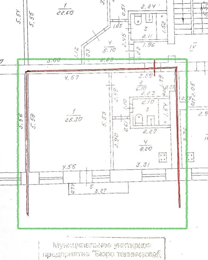 Жилая площадь 25.3 м2