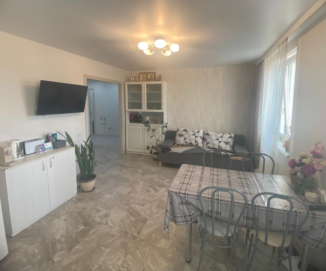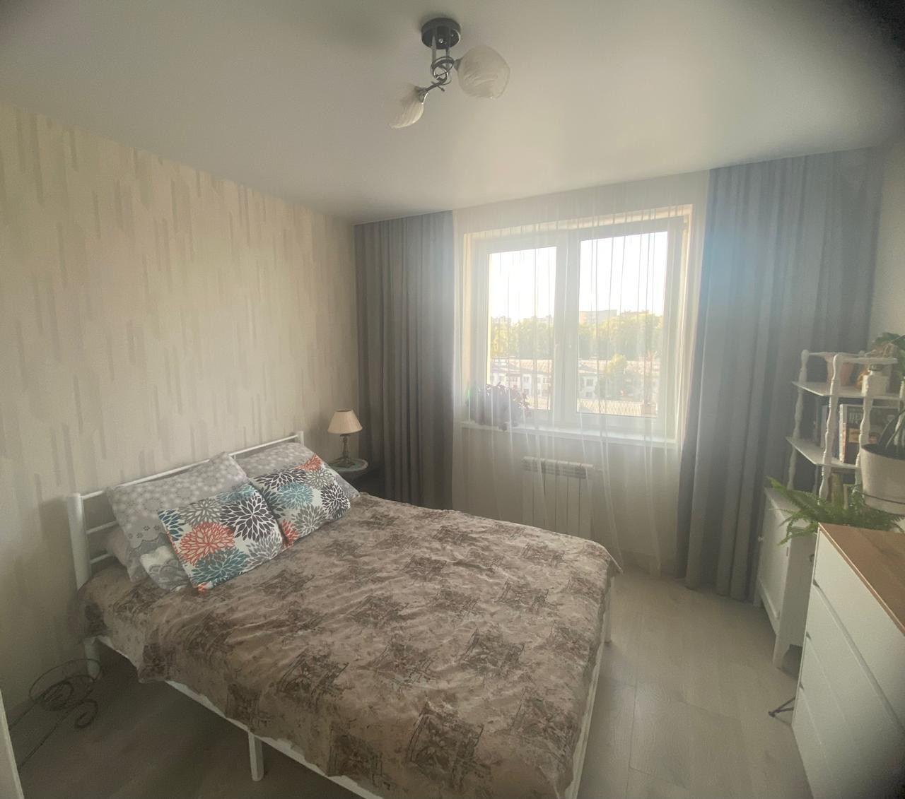 Планировка - просторная с изолированными комнатами: прихожая, кухня-гостиная, две спальни, раздельный санузел, остекленная лоджия. Уютная кухня с компактным кухонным гарнитуром оборудована необходимой техникой.