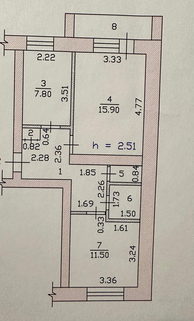 Площадь кухни 7.8 м2
