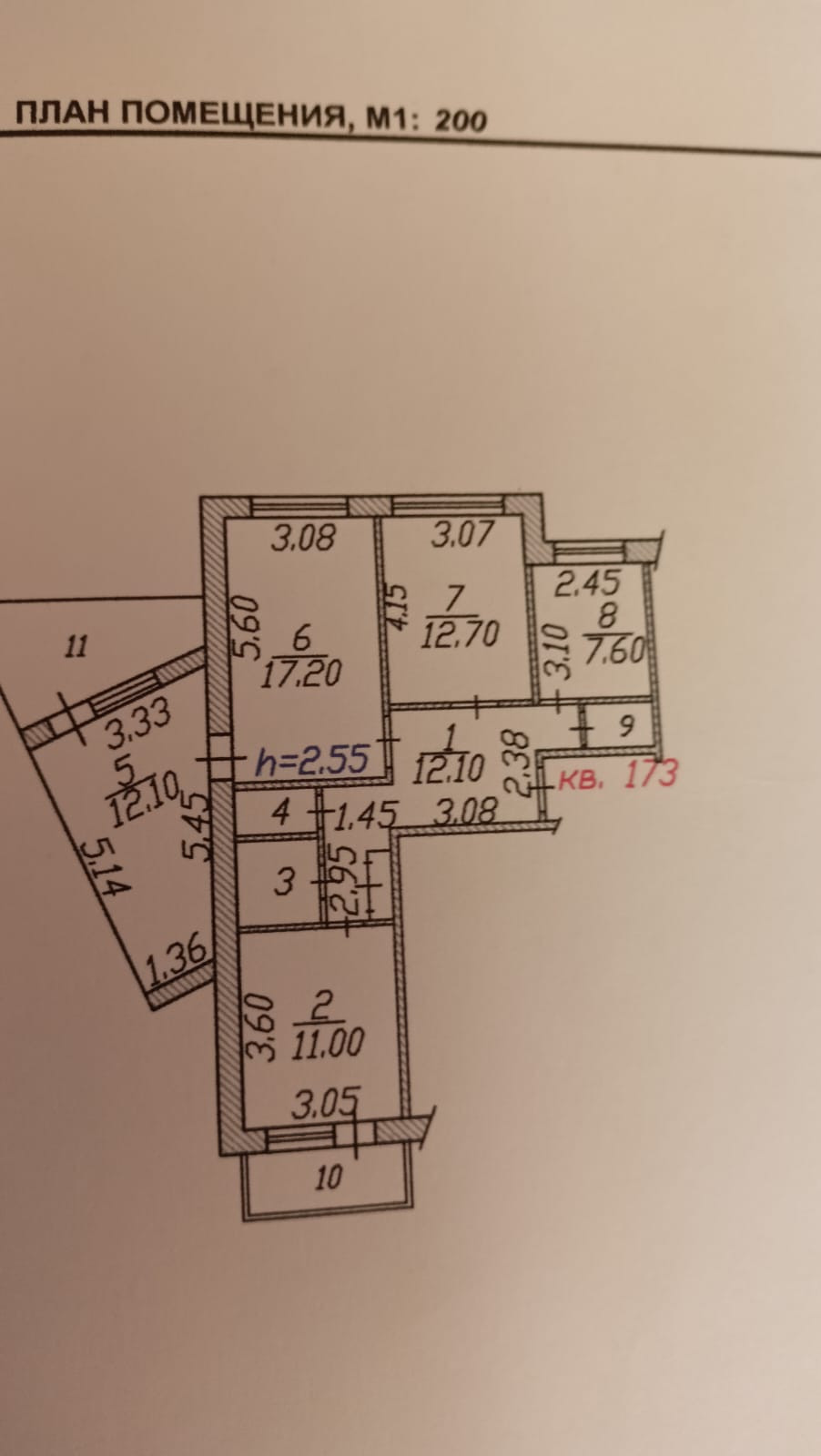 Высота потолков 2.5 м