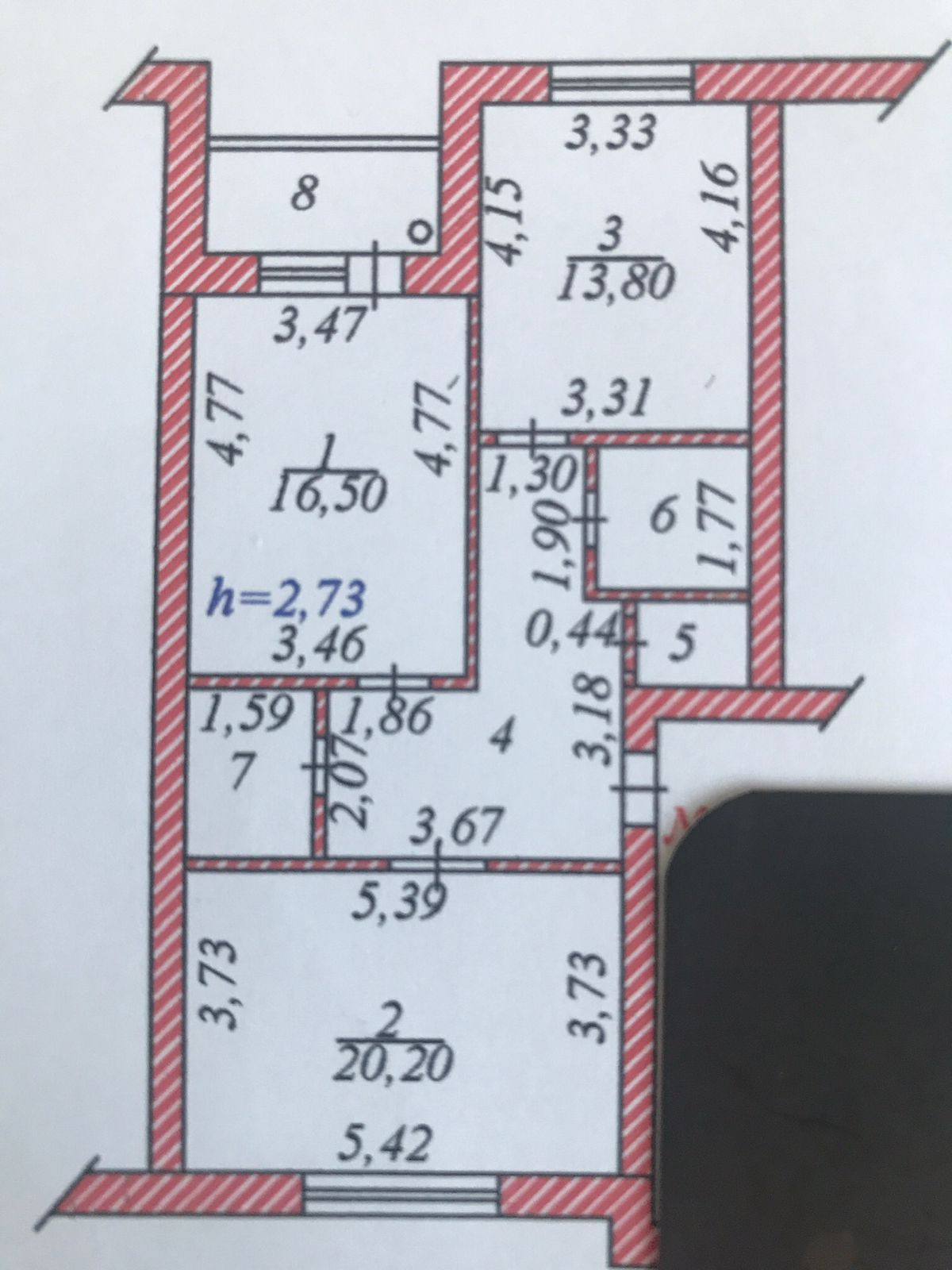 Высота потолков 2.7 м
