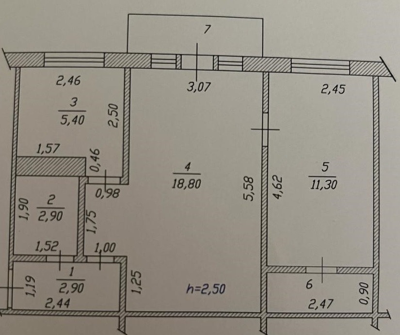 Высота потолков 2.5 м
