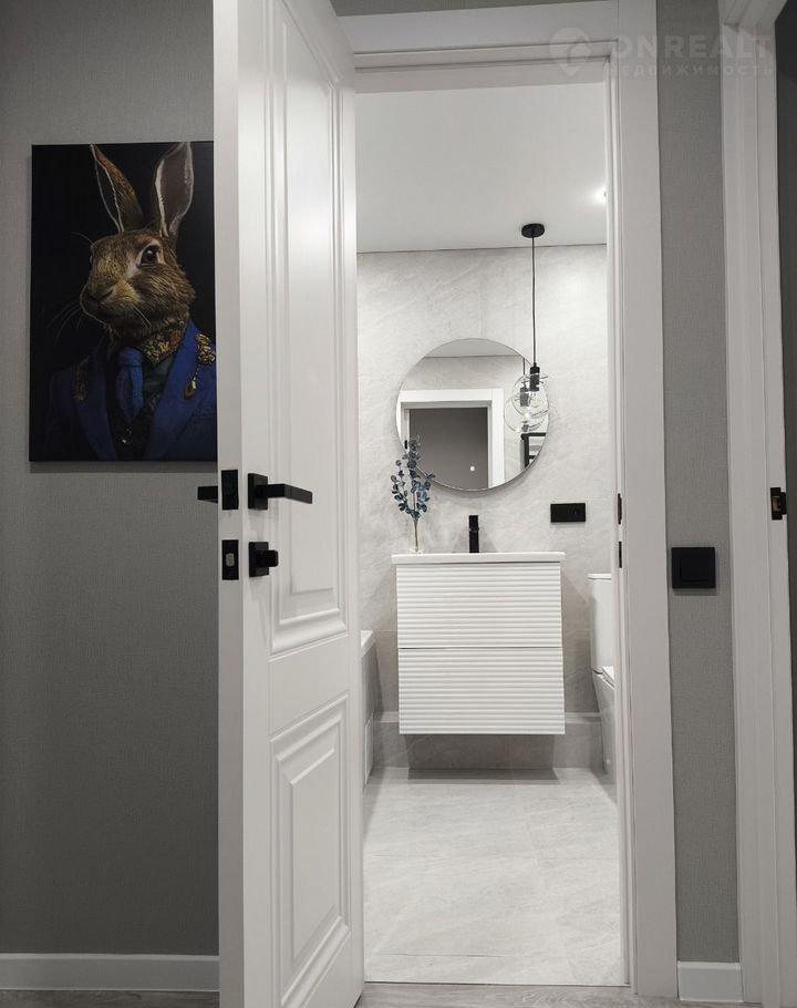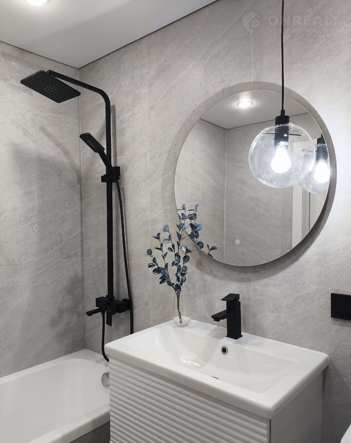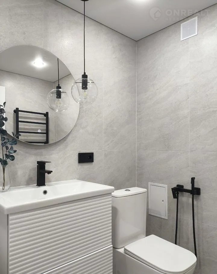 В квартире совмещенный санузел с современным дизайном и качественной сантехникой.