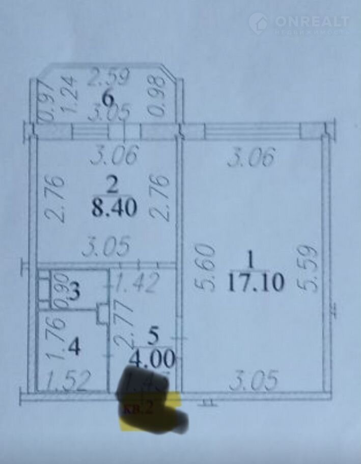 Жилая площадь 17.1 м2
