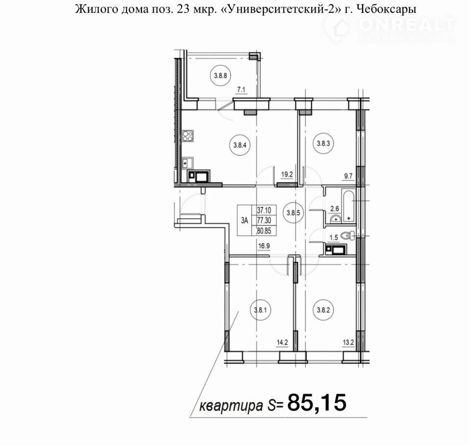 Общая площадь 85.2 м2
