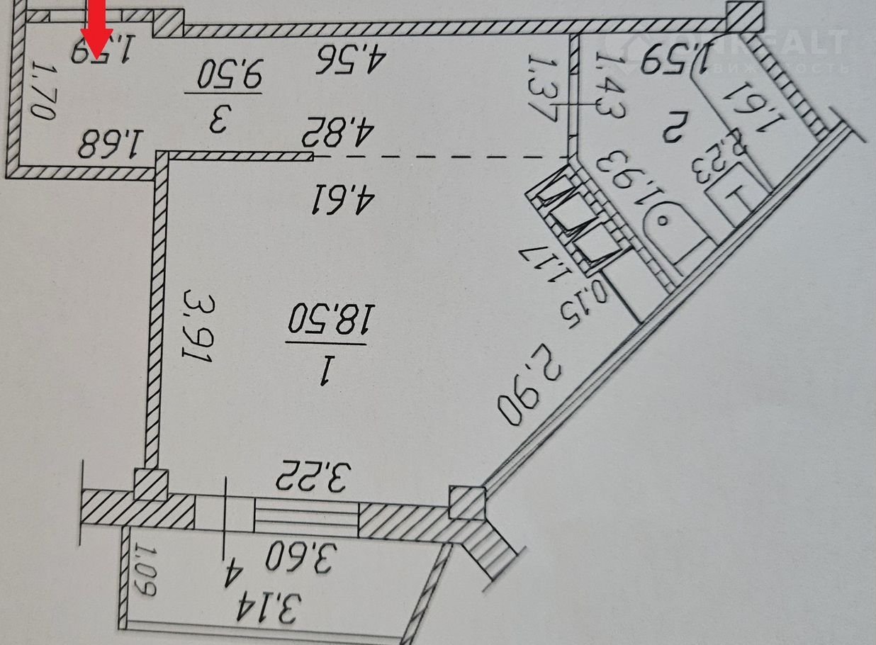 Жилая площадь 18.5 м2