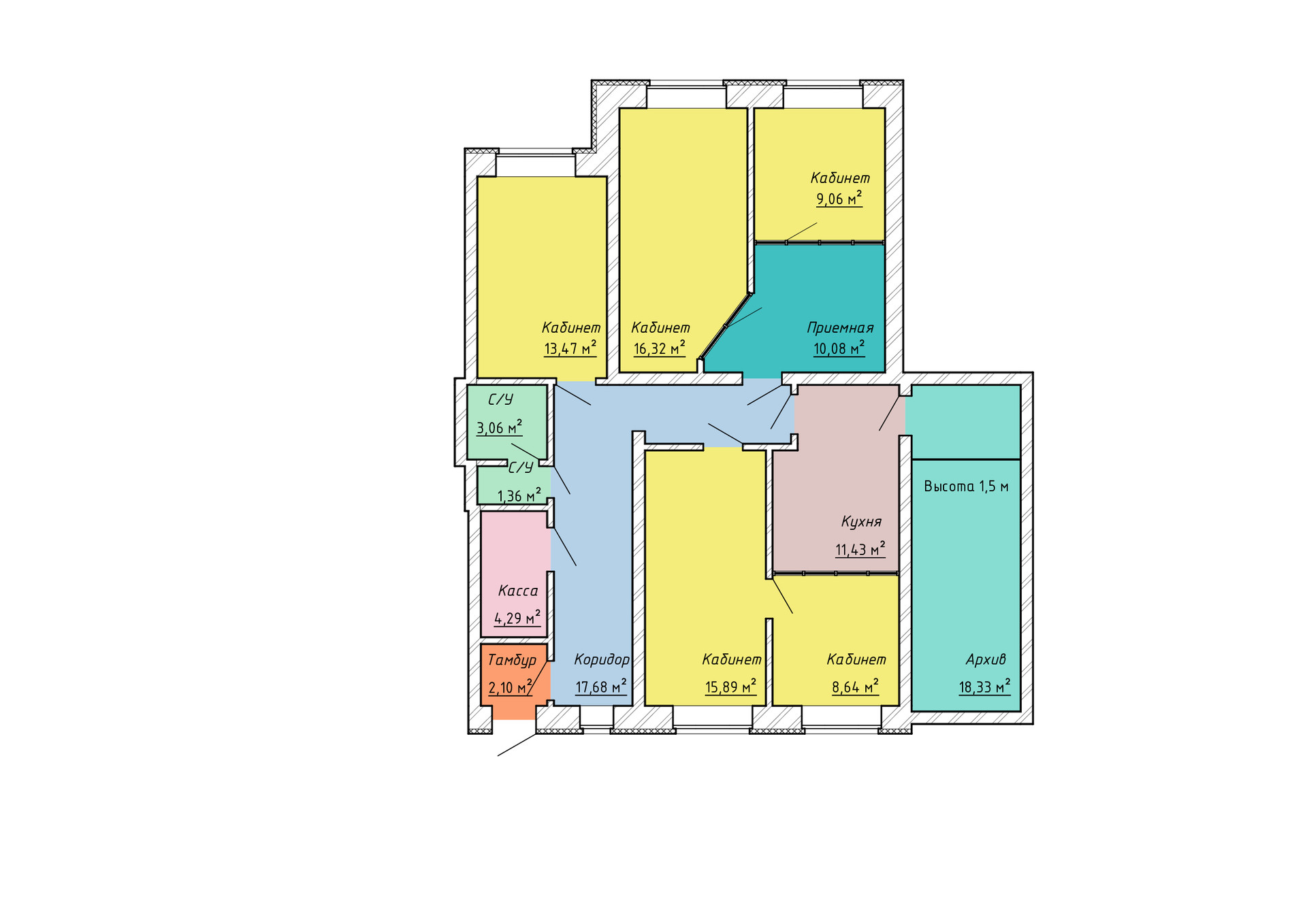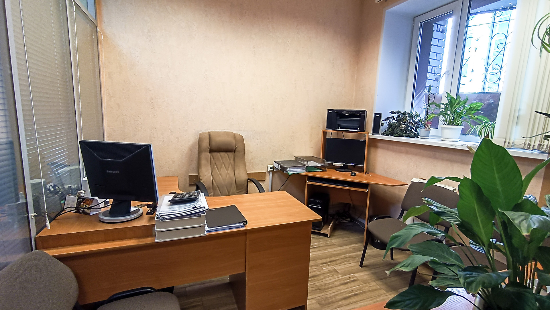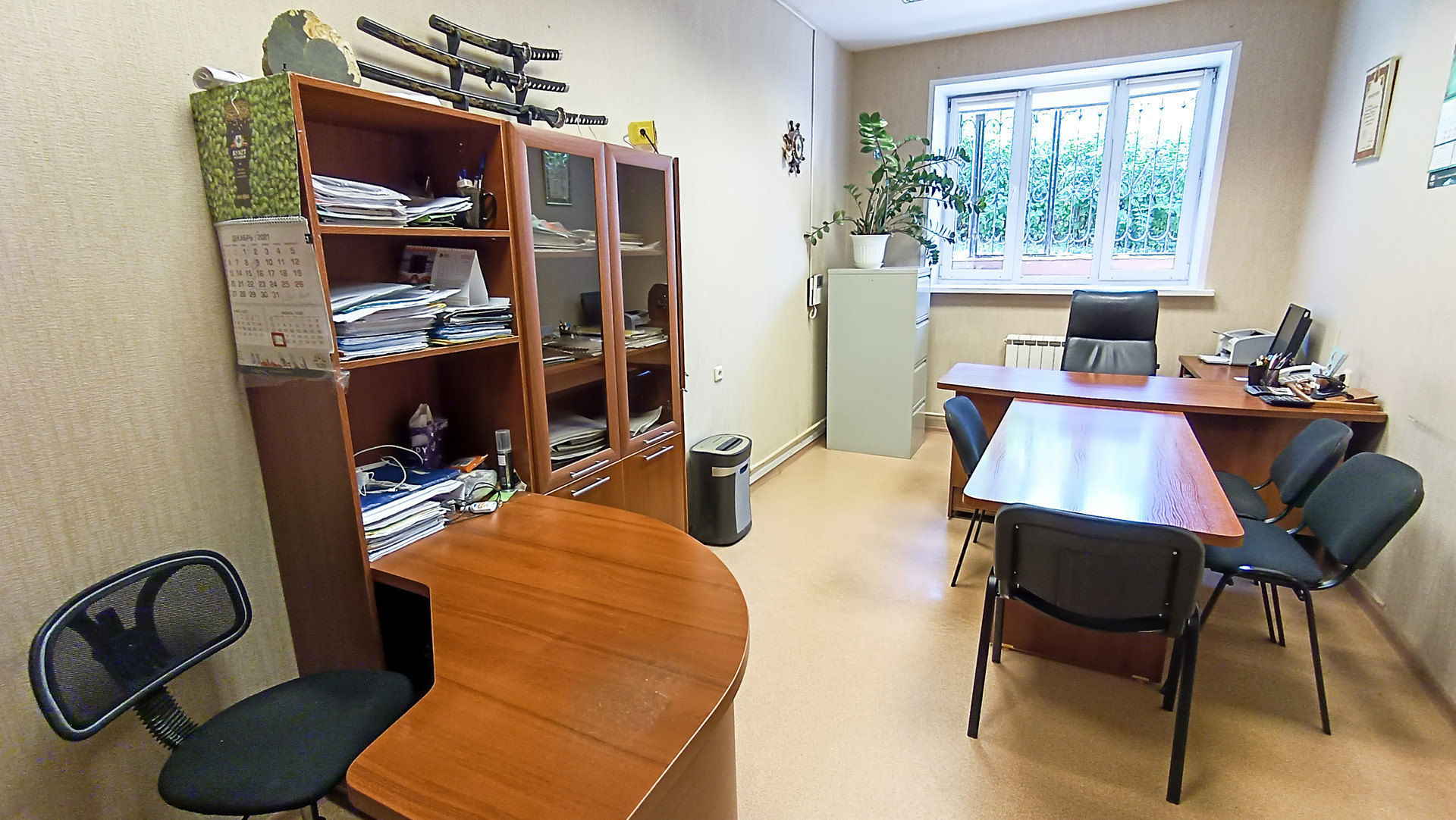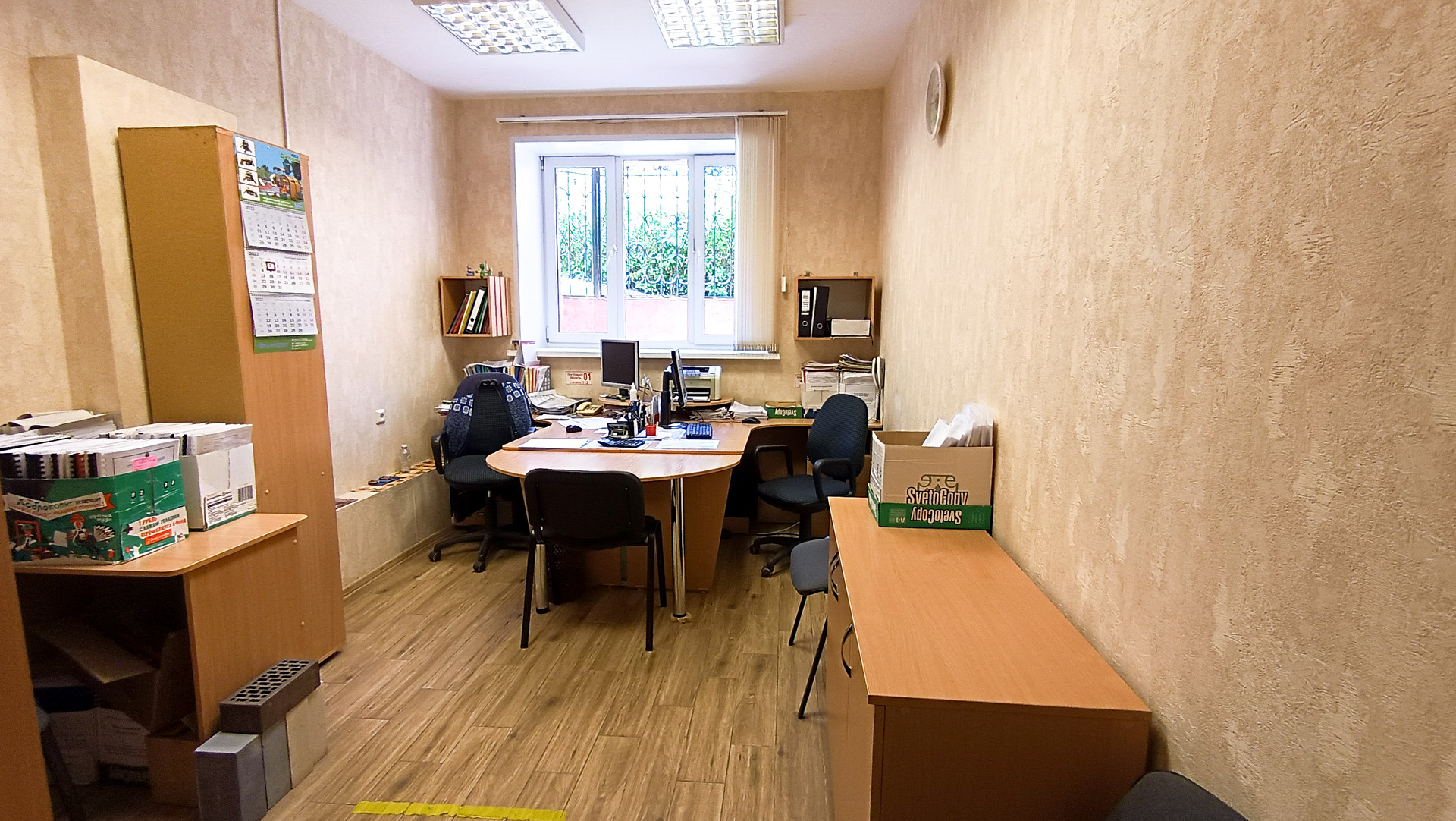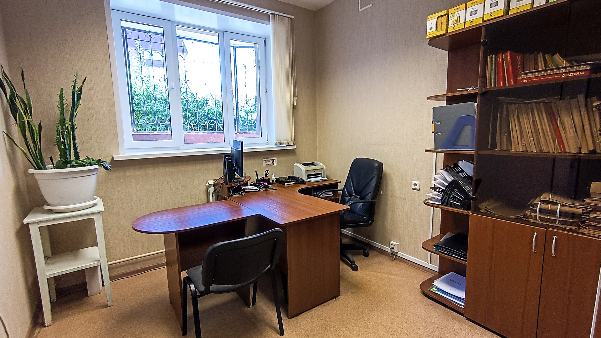 2) Помещение с хорошим ремонтом и окнами. Часть офиса площадью 14 кв.м. и высотой потолков 1.5 м. составляет комната архива.