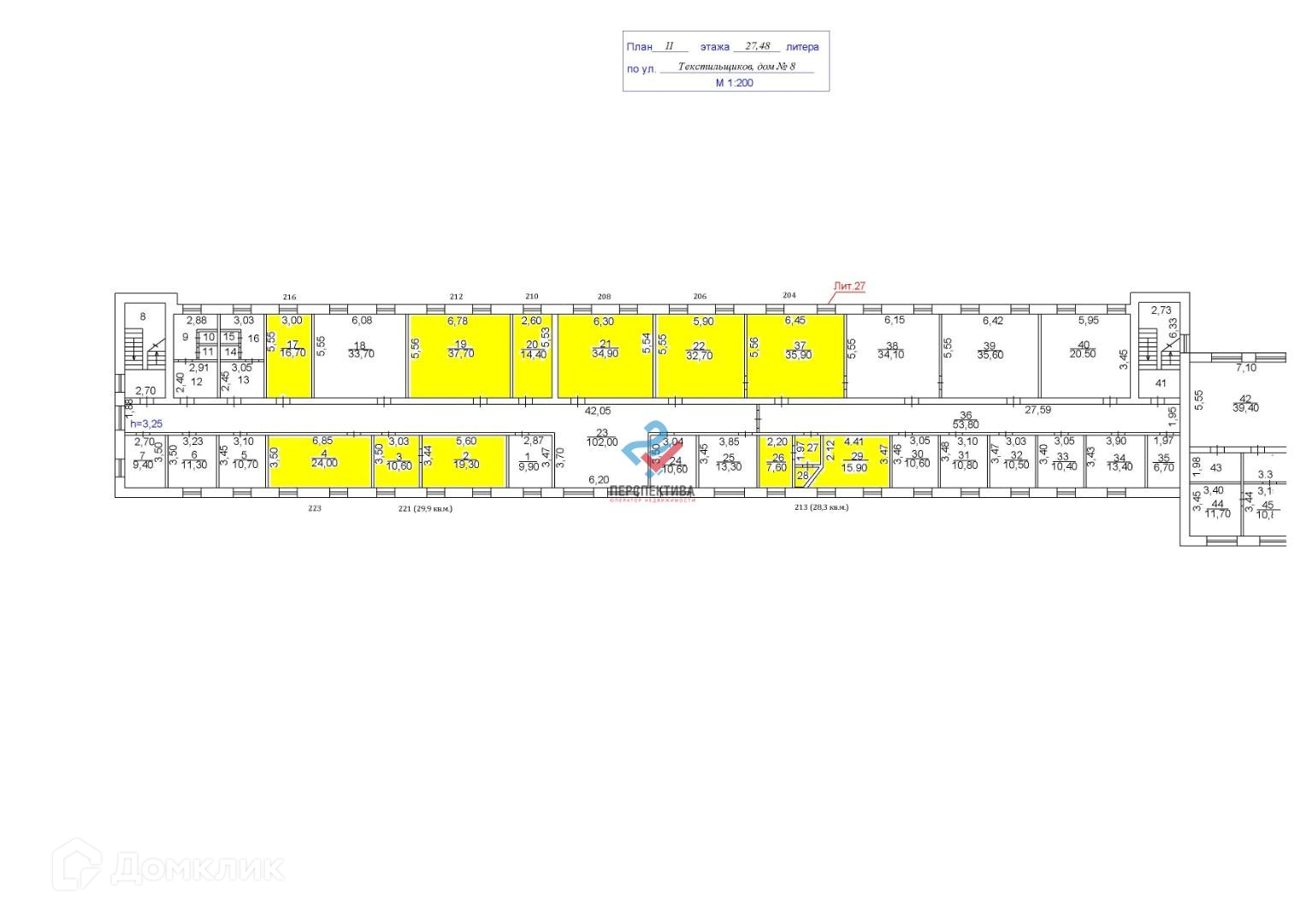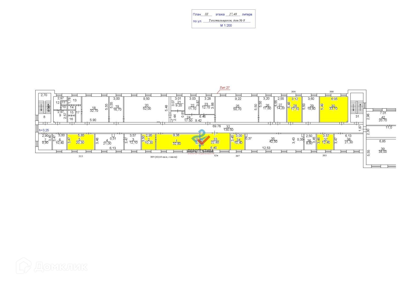 Площадь помещений от 10 кв.м. до 140 кв.м. Высота потолков – 3 м.