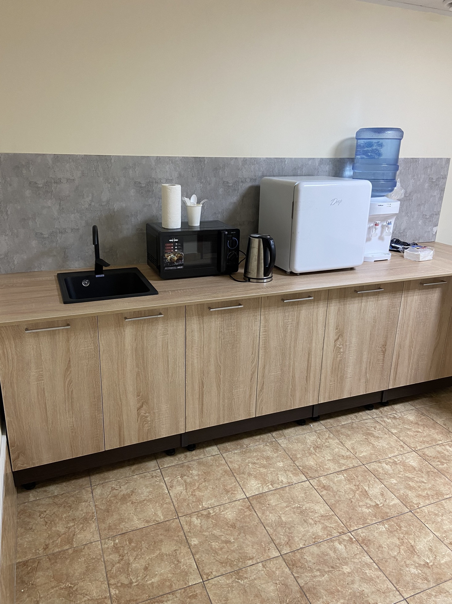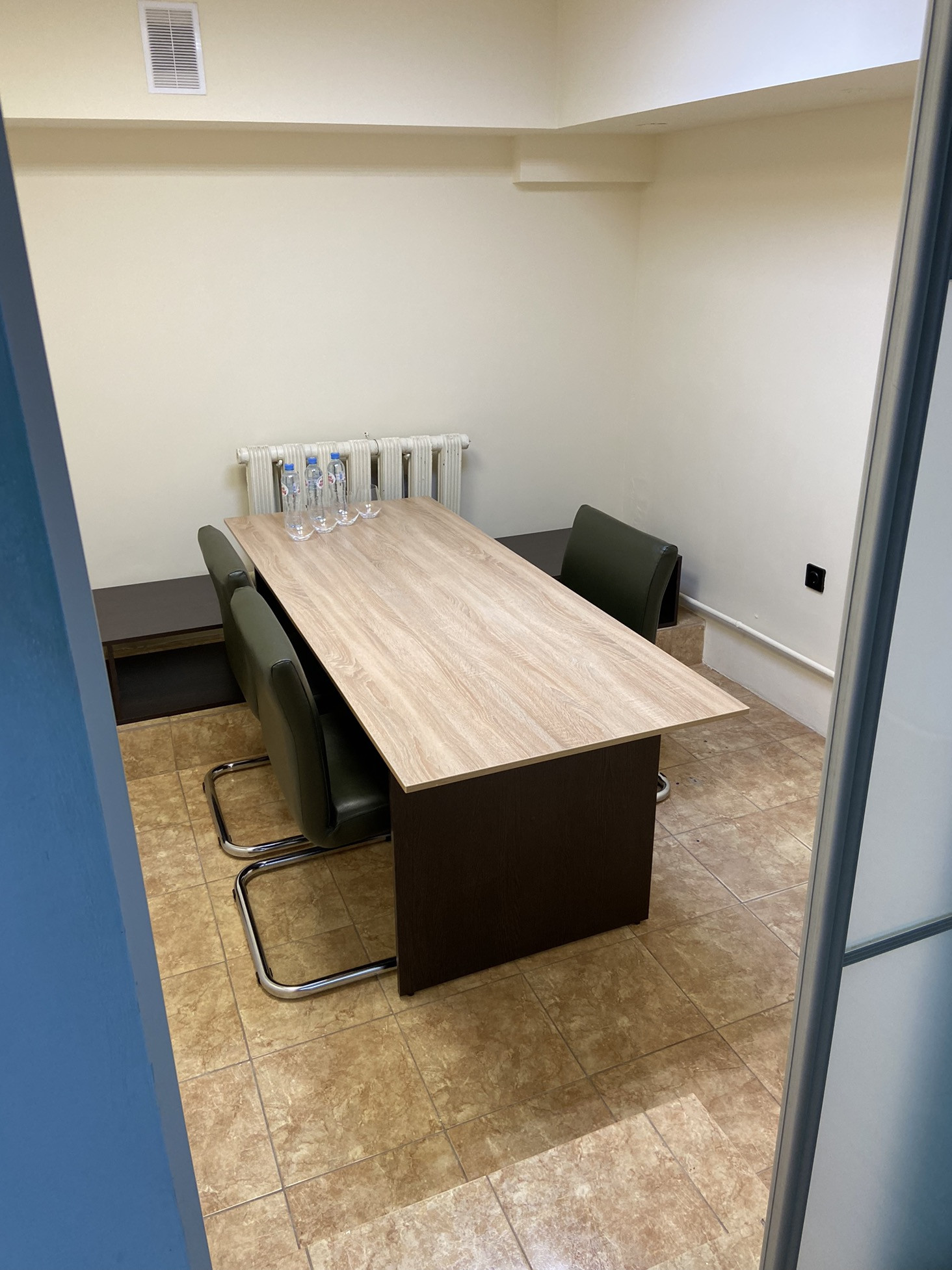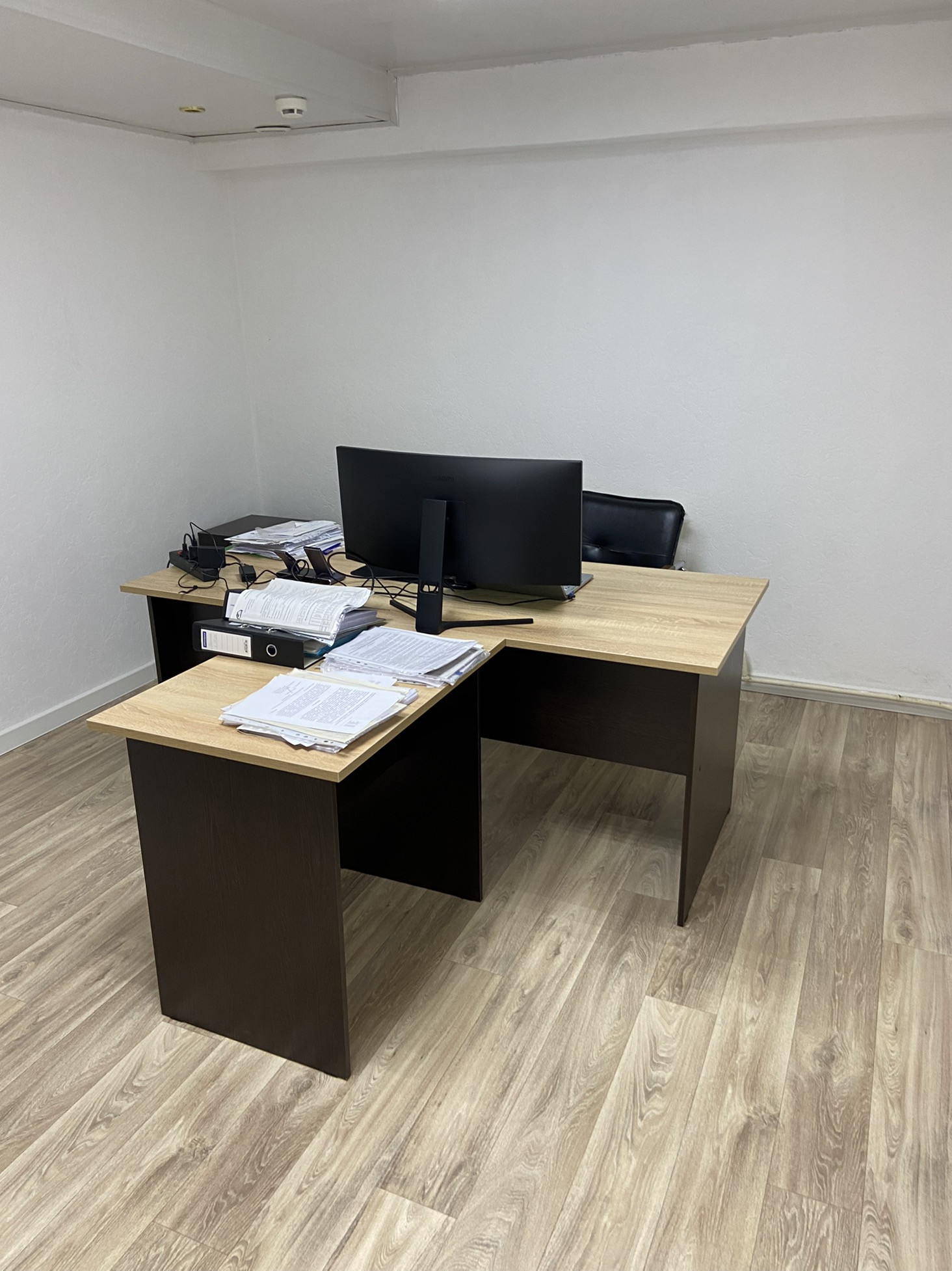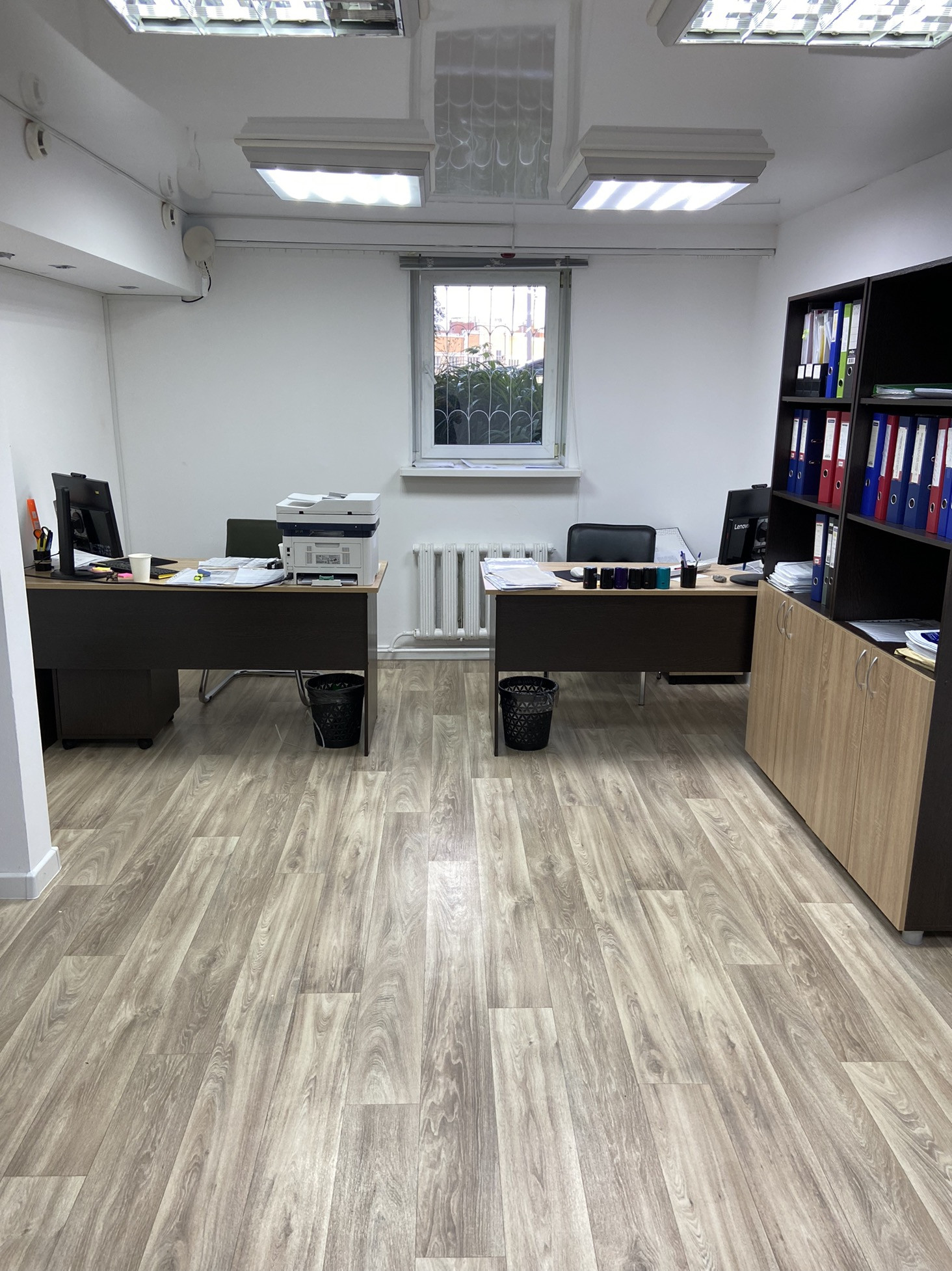 Сделан свежий косметический ремонт - покрашены стены, заменён линолеум, плинтуса, розетки и включатели, новая офисная мебель и кухонный гарнитур.