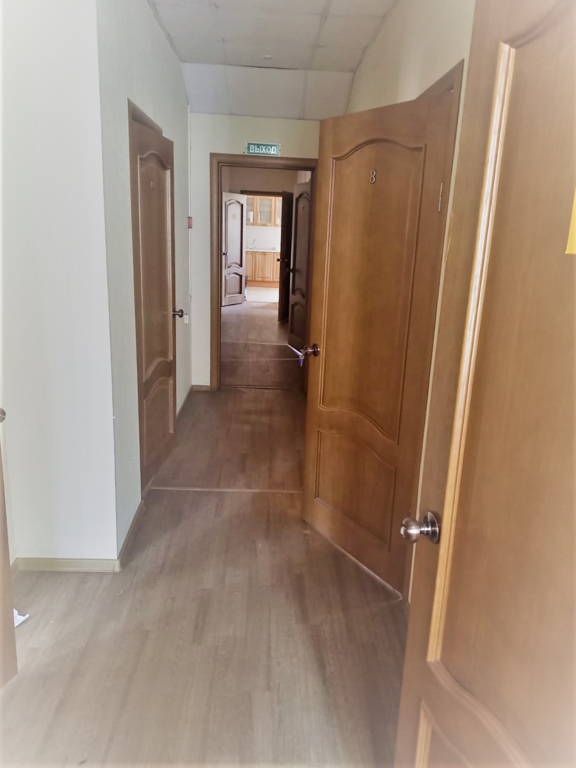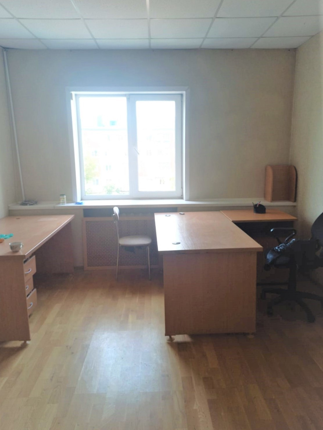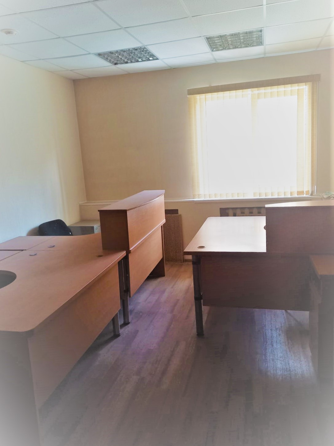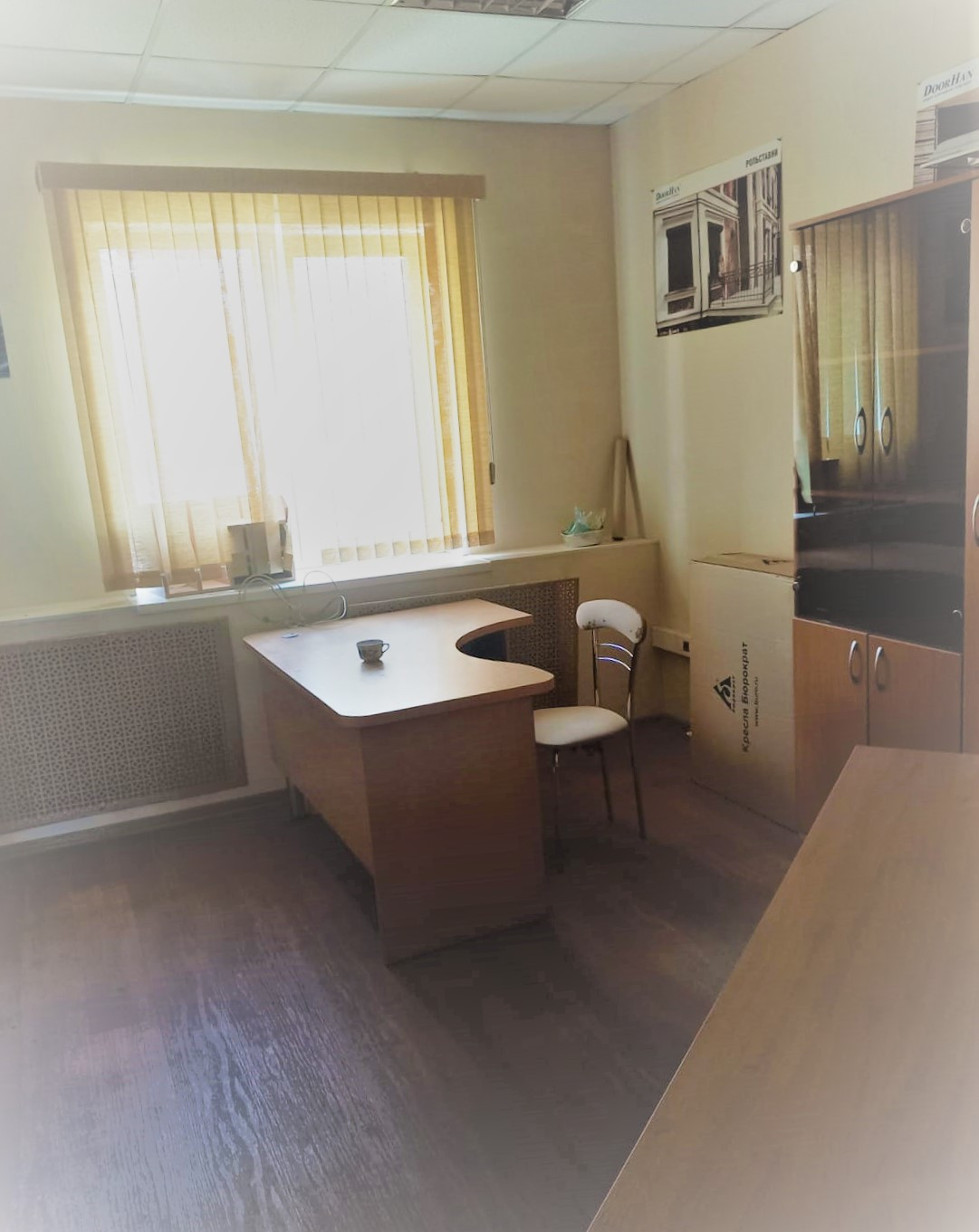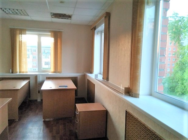 Часть кабинетов с мебелью.  Стеклопакеты на окнах.