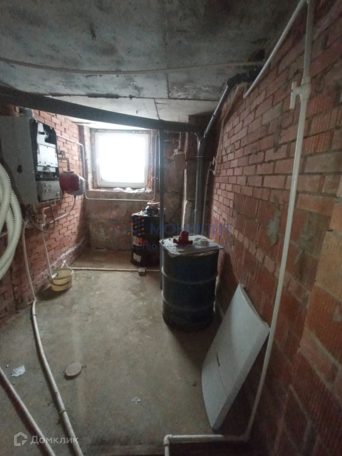 Подвал в черновой отделке разделен на три комнаты: техкомната, вторая и третья подходят под сауну.