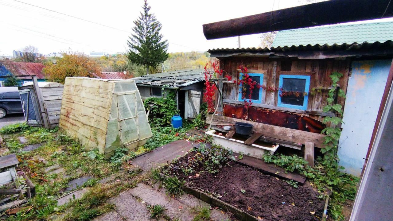 На участке дом-сруб с печкой, ветхий, под снос. ИЖС.