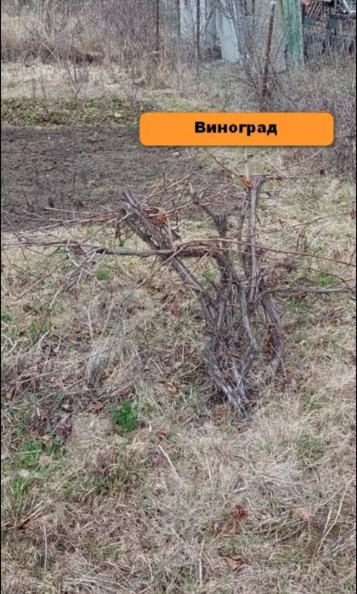 На участке посажены: малина, яблоня, слива, смородина, крыжовник, шиповник, виноград, клубника.