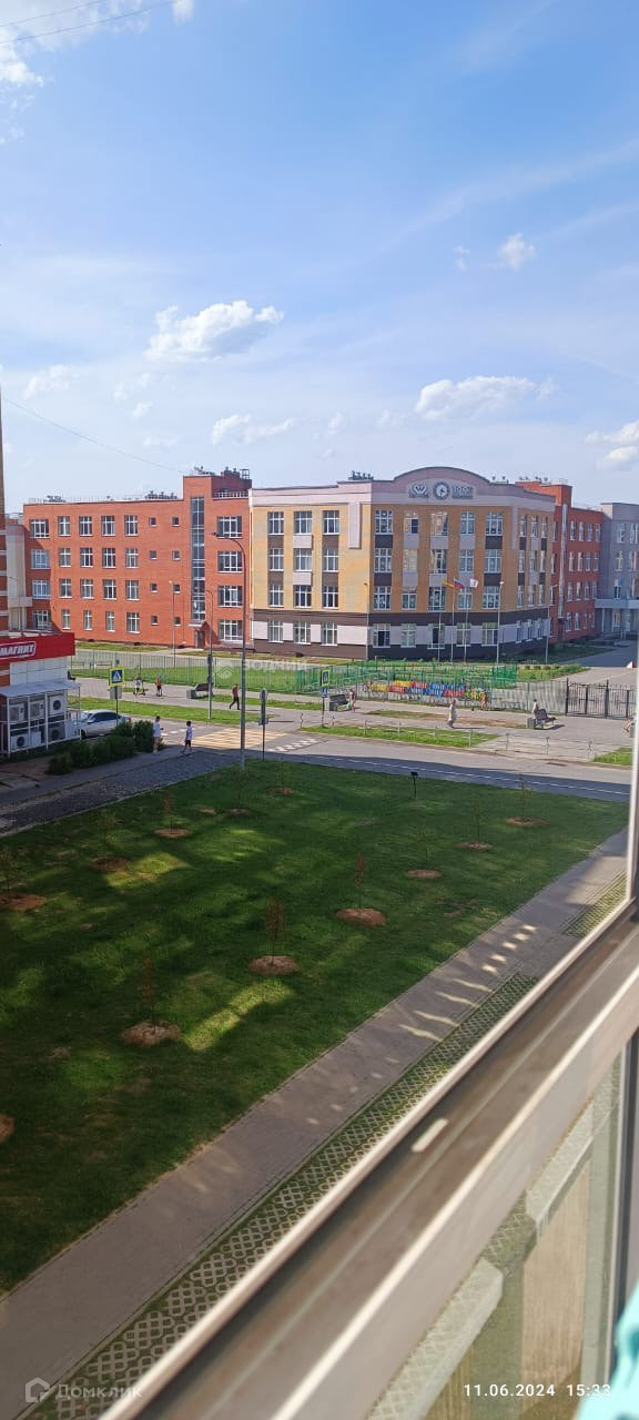 Удобная локация- в шаговой доступности школы, садики, магазины. Вид из окна на школу.