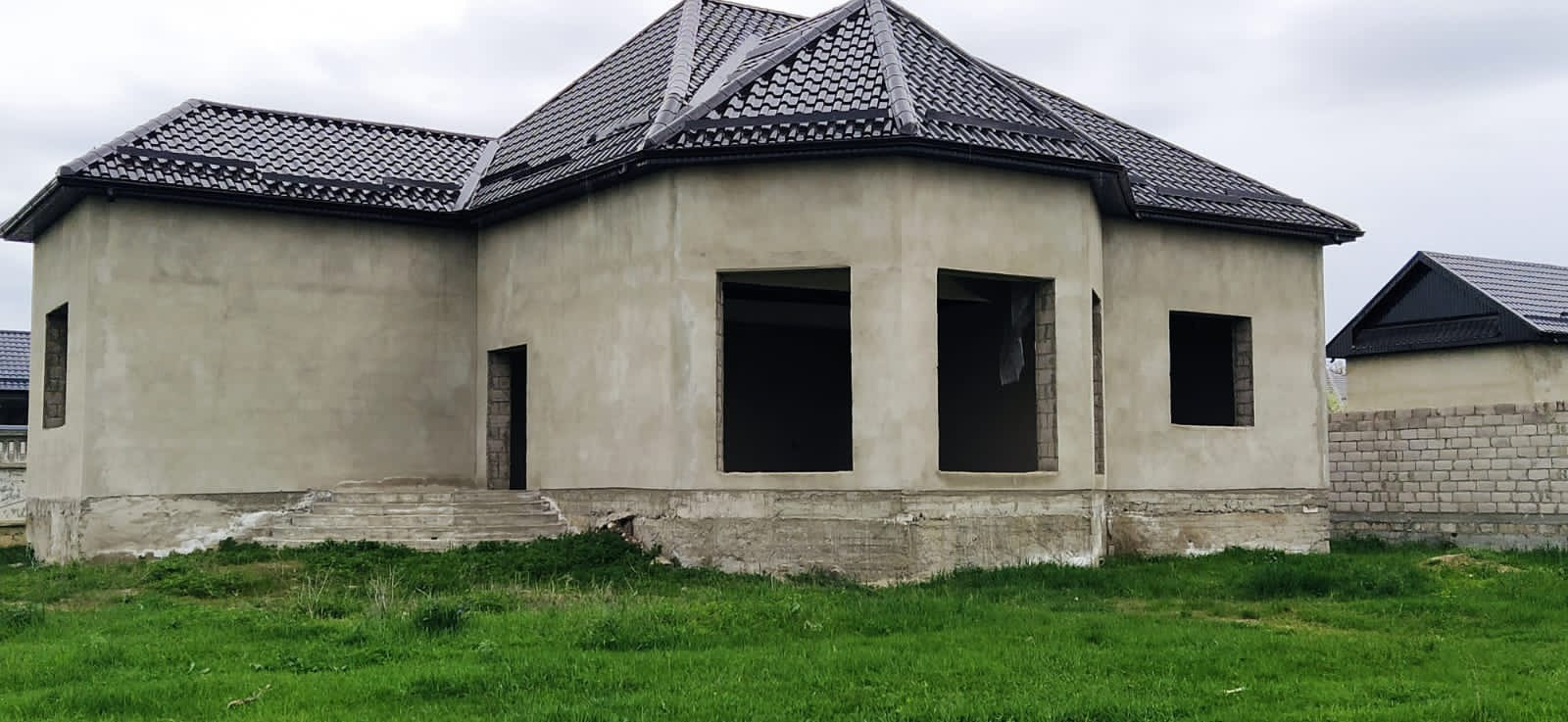 В доме сделаны черновые работы, проведена качественная электрика, песчано-маячная штукатурка и шпаклевка, очень качественная кровля!