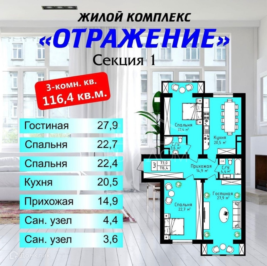 Общая площадь 116.4 м2