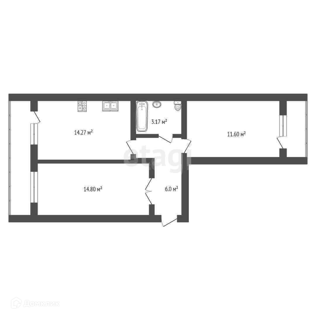 Общая площадь 58.5 м2