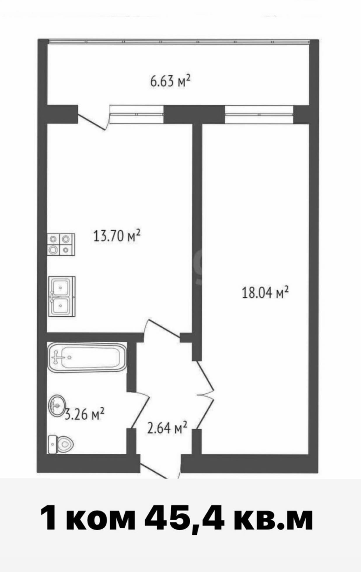 Общая площадь 45.4 м2