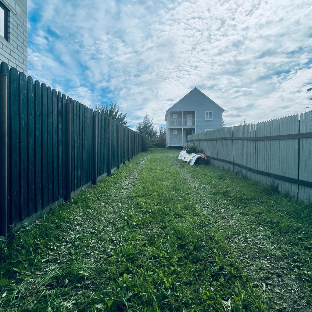 Оборудована отдельная въездная группа и парковка на несколько машин. Участок огорожен забором из профнастила. Подъезд к участку асфальтирован, зимой дороги чистят, подключено уличное освещение. Соседи живут круглогодично.