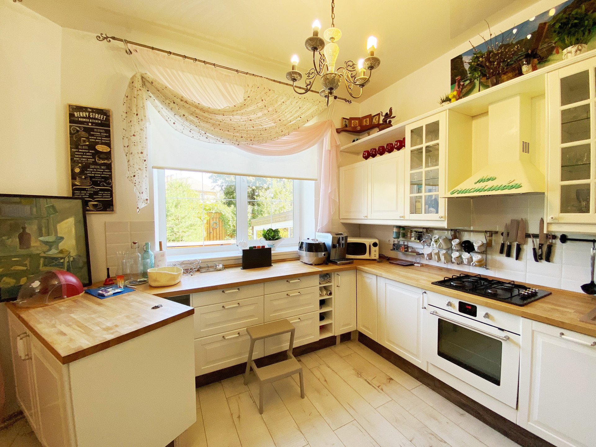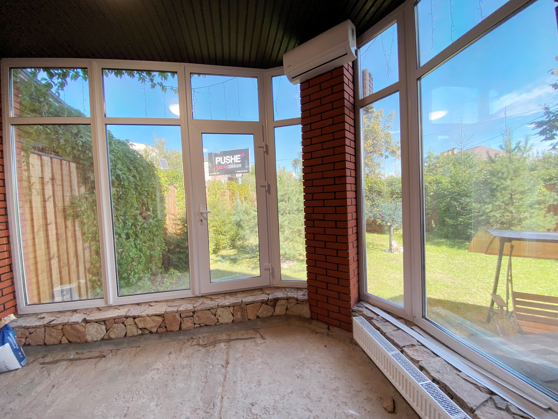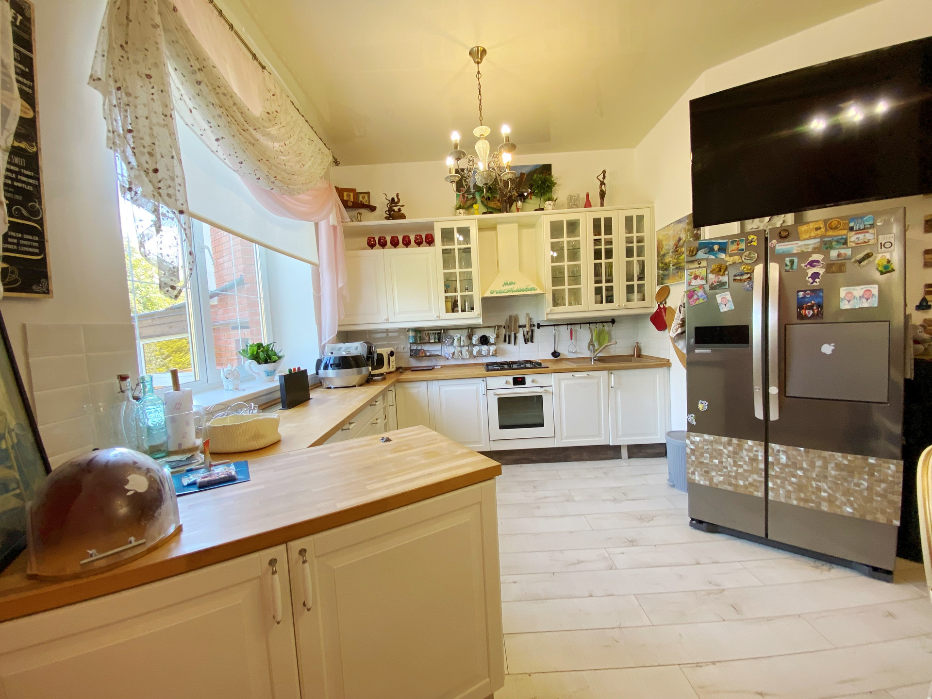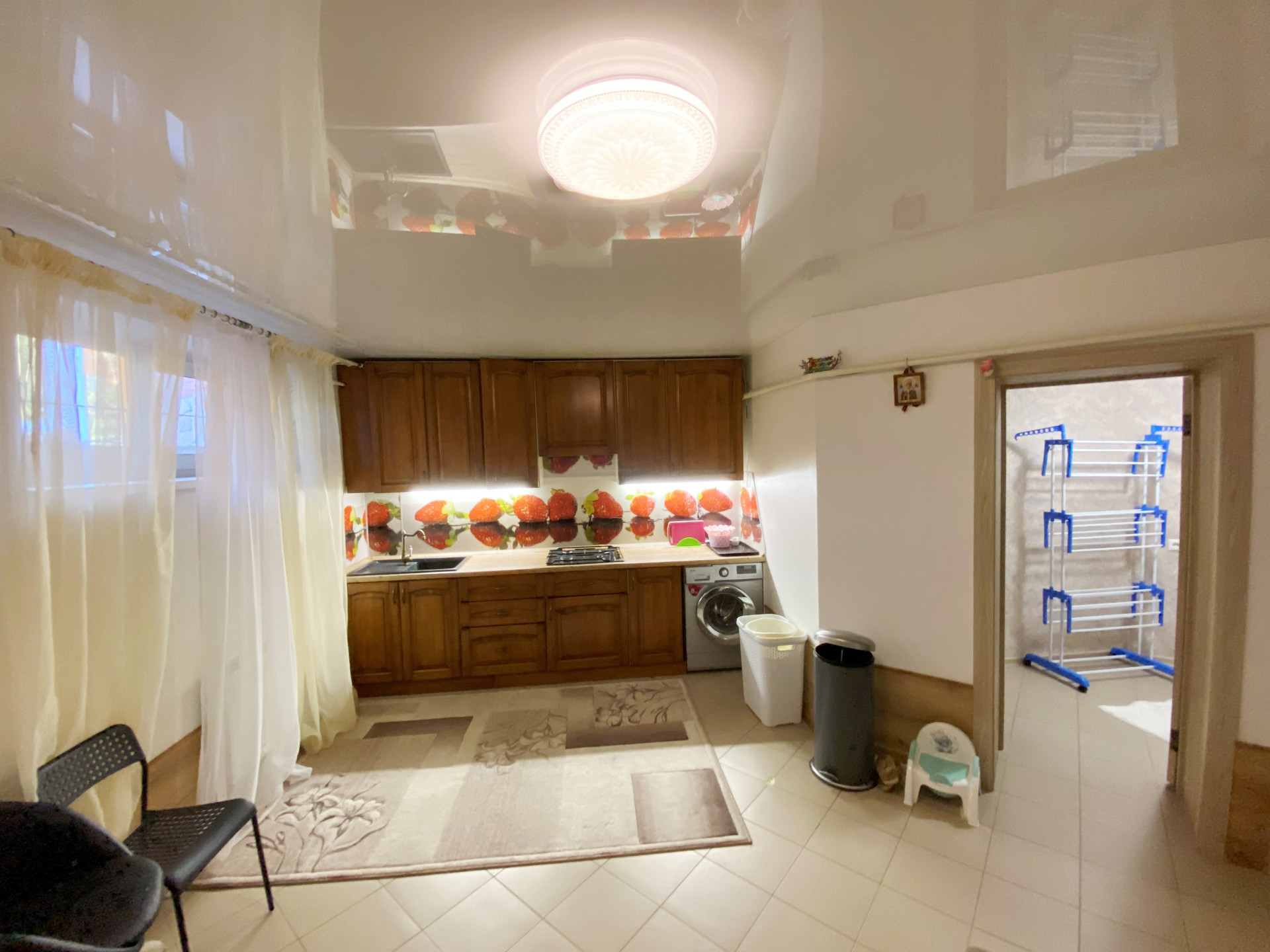 1 этаж- прихожая 20 м2 с большим вместительным шкафом, светлая кухня-столовая с выходом на застекленную, теплую террасу, установлен кондиционер;