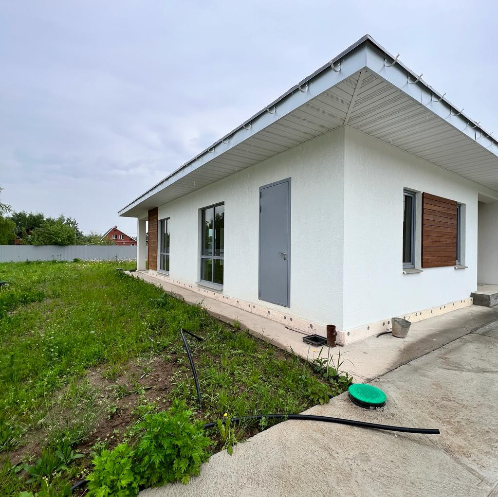 Дом капитального строения, одноэтажный, общей площадью 153,2 кв.м. Выполнен из качественных современных строительных материалов. Идеально продуманная современная планировка, панорамные окна, много воздуха и света – всё это сочетается в нашем доме.
