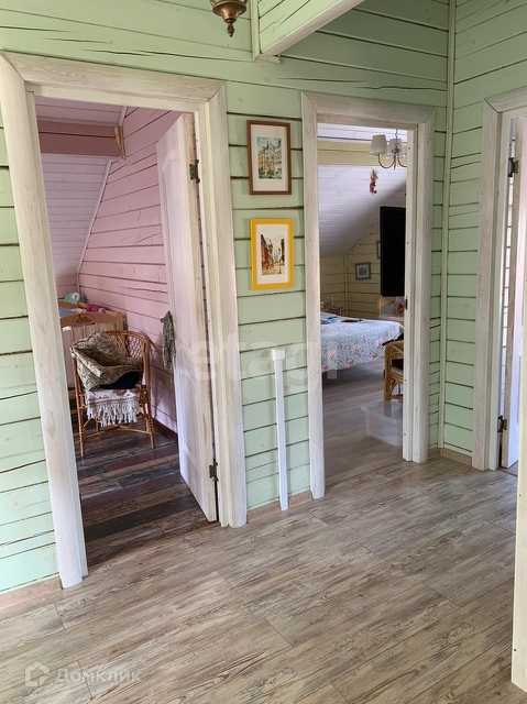 В доме на 1-ом этаже кухня-гостиная,спальня и сан.узел , застекленная веранда, на 2-ом этаже (мансардный) - 3 спальни, холл, санузел.