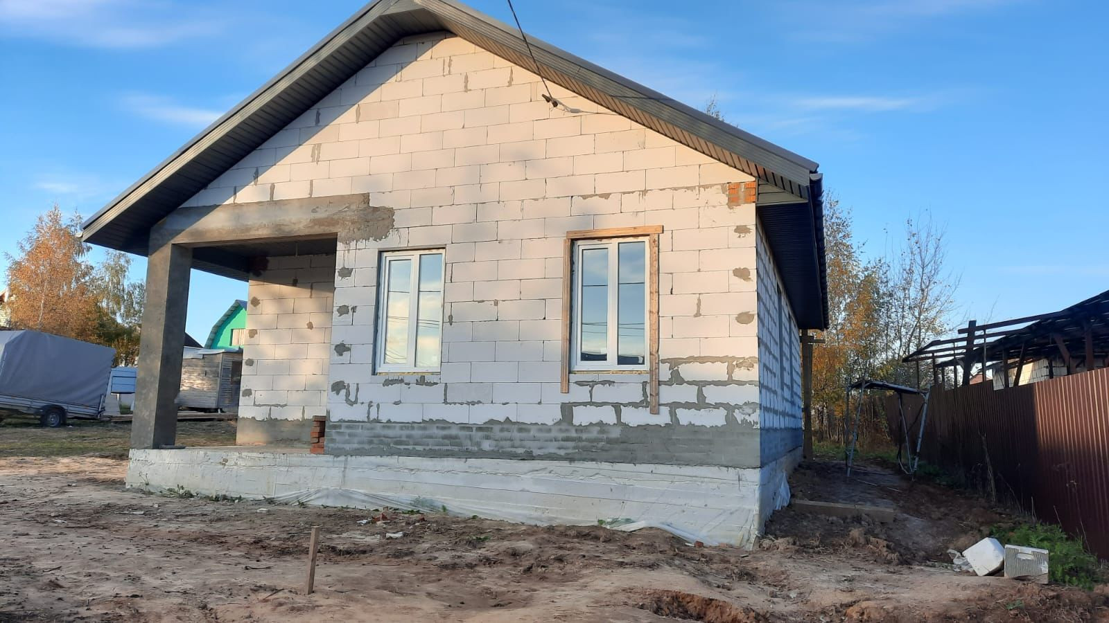 Дом размером 8,6 м. * 12,1 м, построен из газобетонных блоков.
