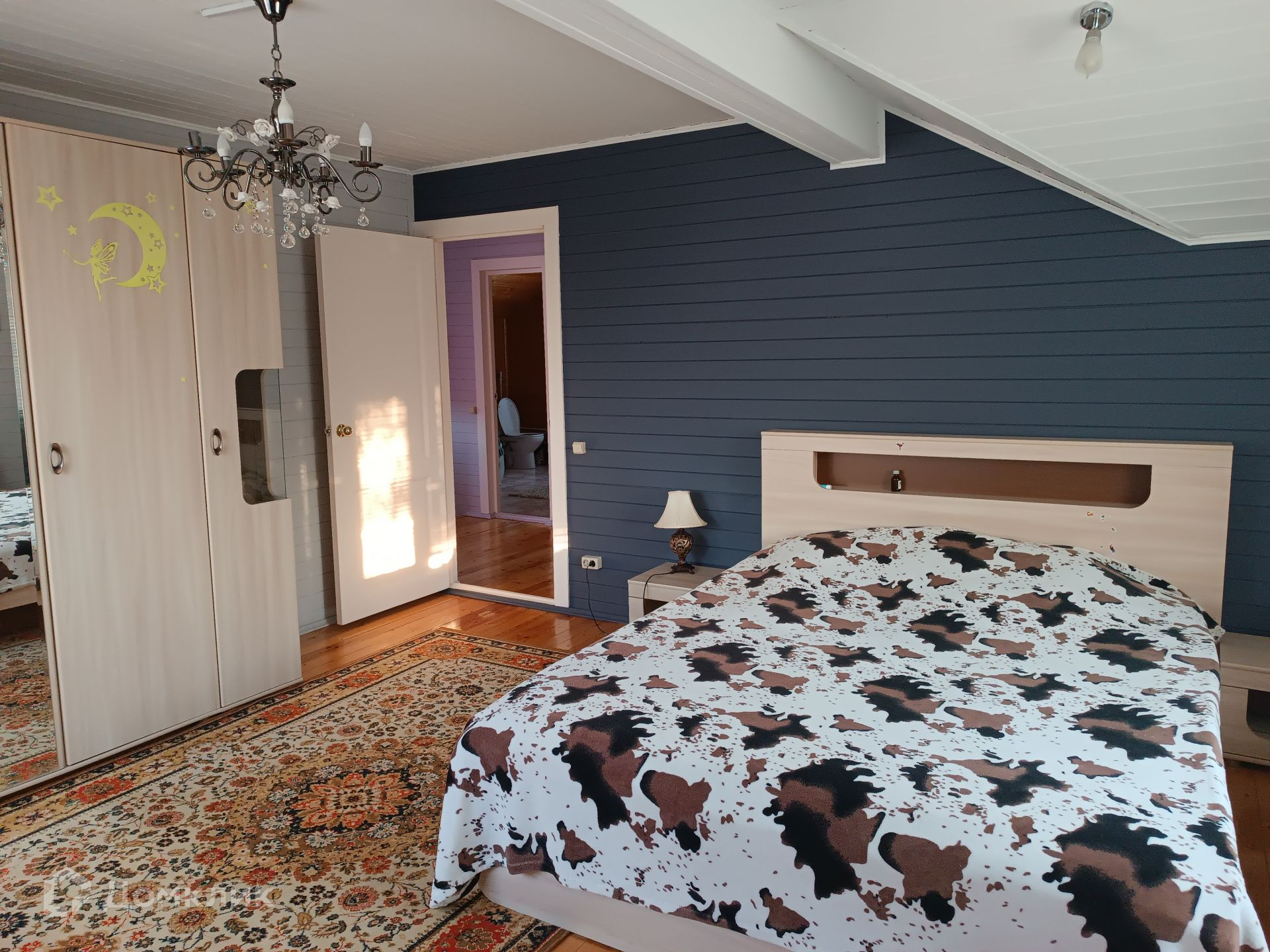На первом этаже прихожая, кухня, светлая просторная гостиная, спальная комната, большой санузел. На втором этаже три спальные комнаты, гардеробная, совмещенный санузел с большой ванной.