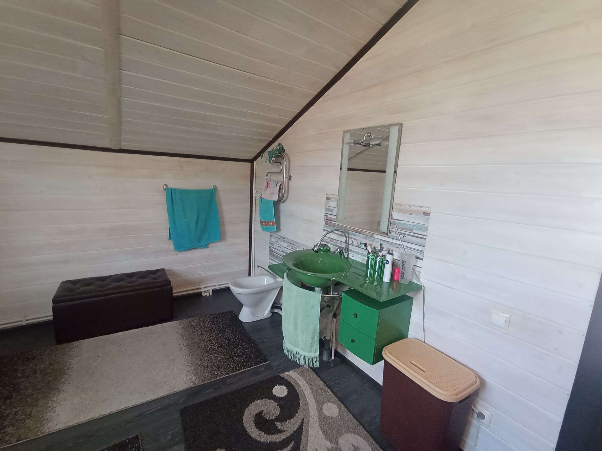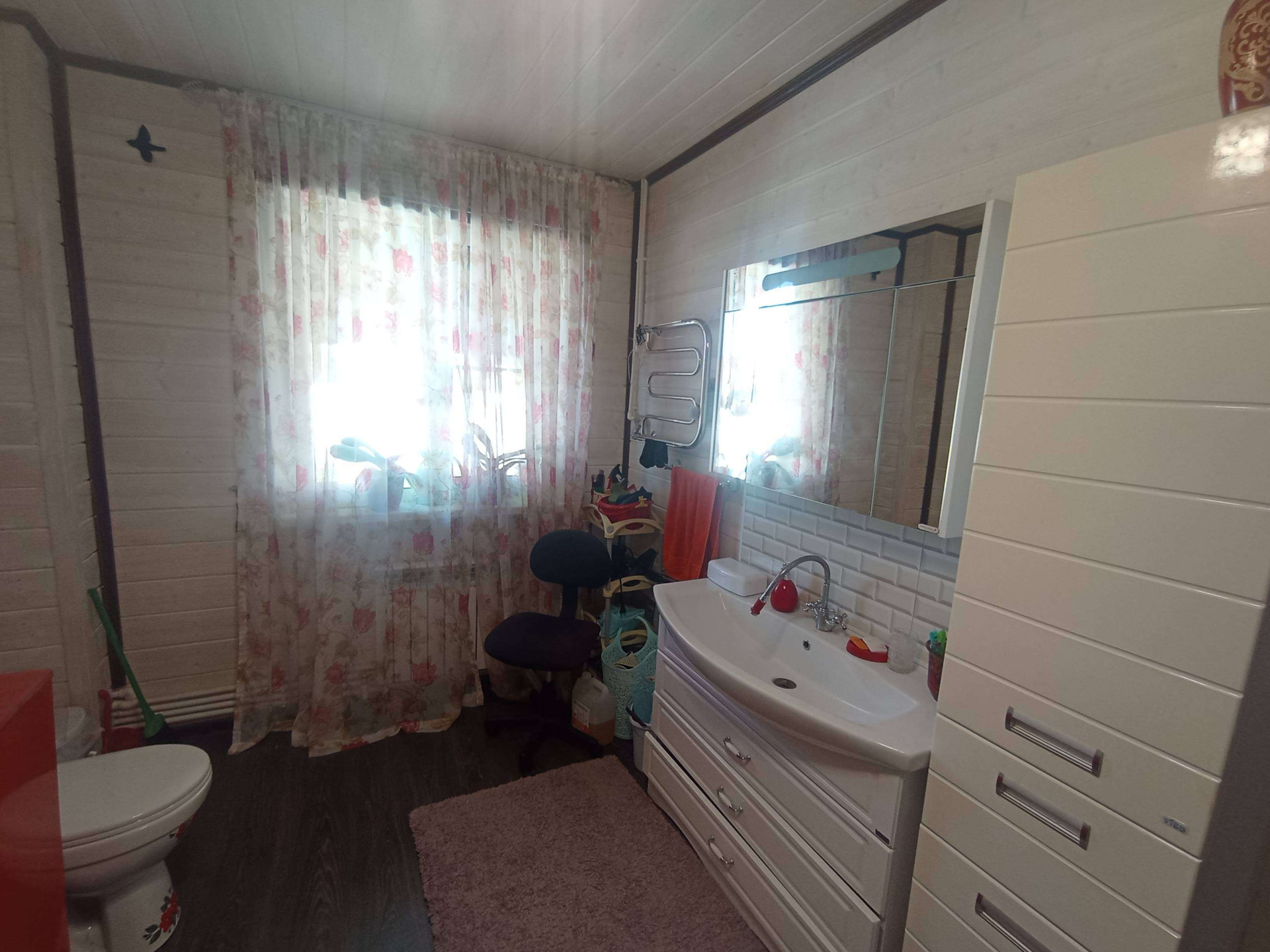 Планировка дома: 1 этаж терасса, прихожая, спальня, просторная гостиная-столовая с кухонной зоной, с/у совмещённый. 2 этаж 3 большие спальни, гардеробная, с/у совмещённый. Частично мебель остается новым собственникам. По периметру дома отмостка из брусчатки. Навес с зоной Патио для приятного провождения отдыха.