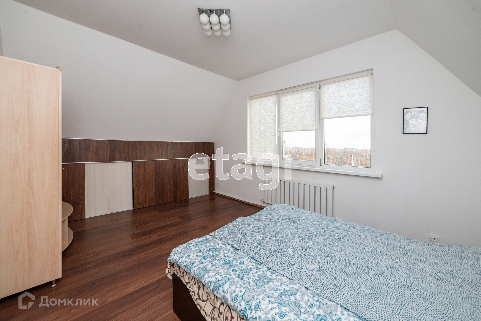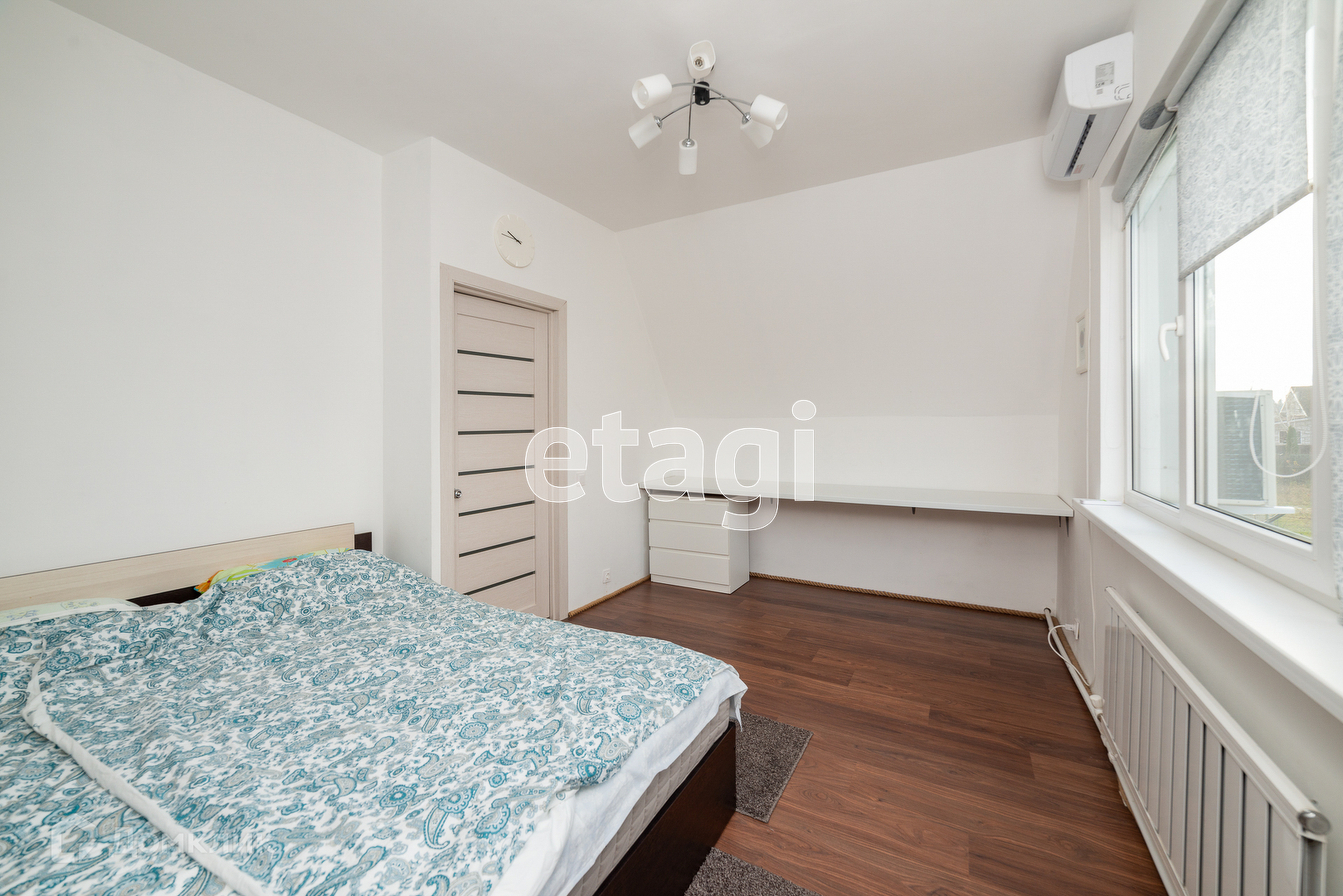 На втором этаже две спальные комнаты на разные стороны. В одной установлен кондиционер. Есть шкафы встроенные в стены, что сильно экономит пространство.