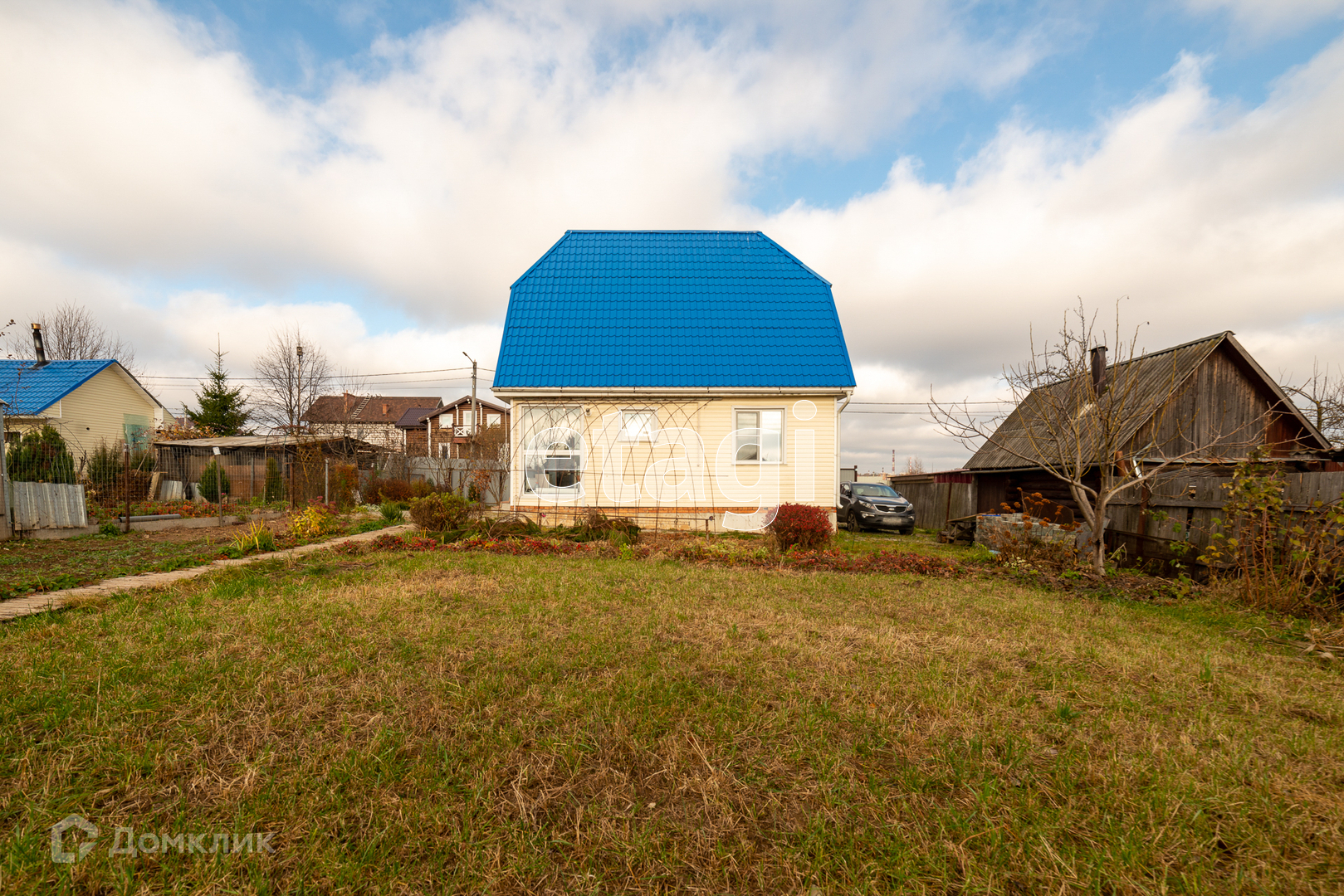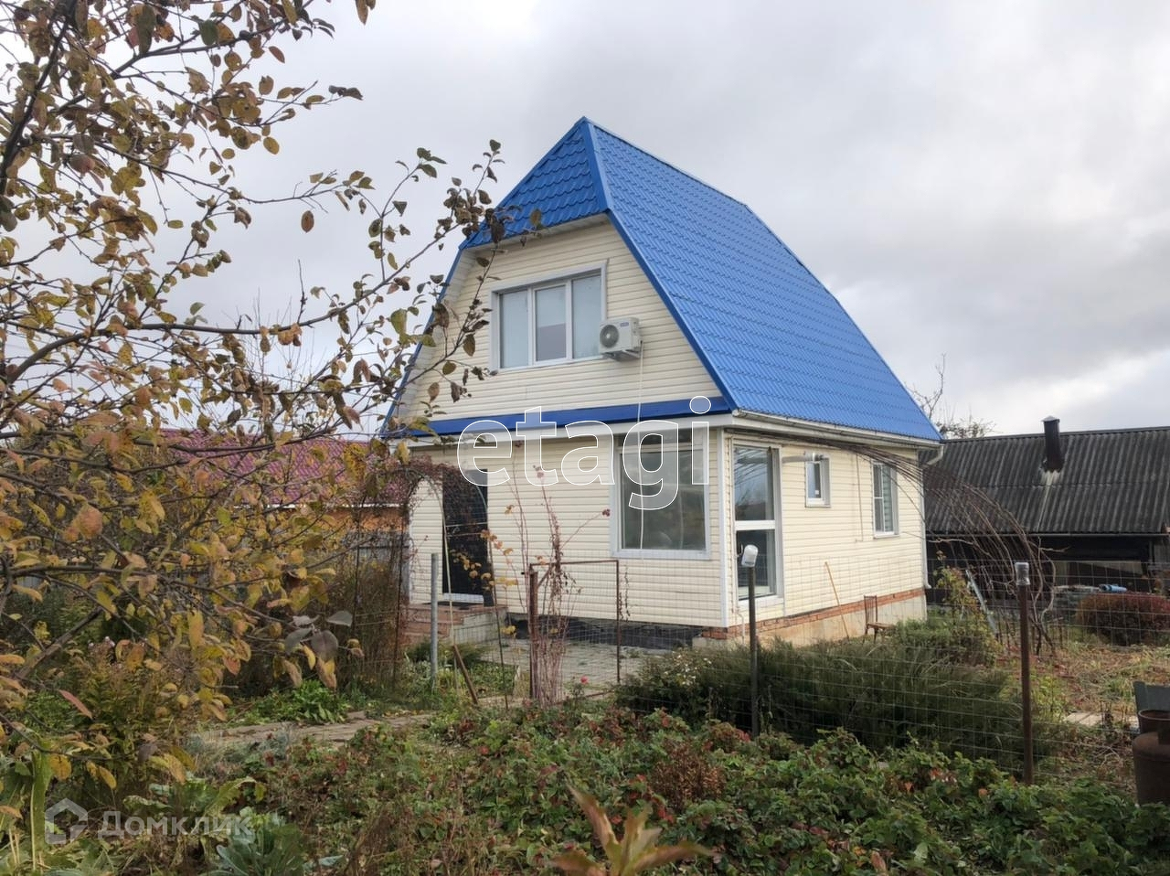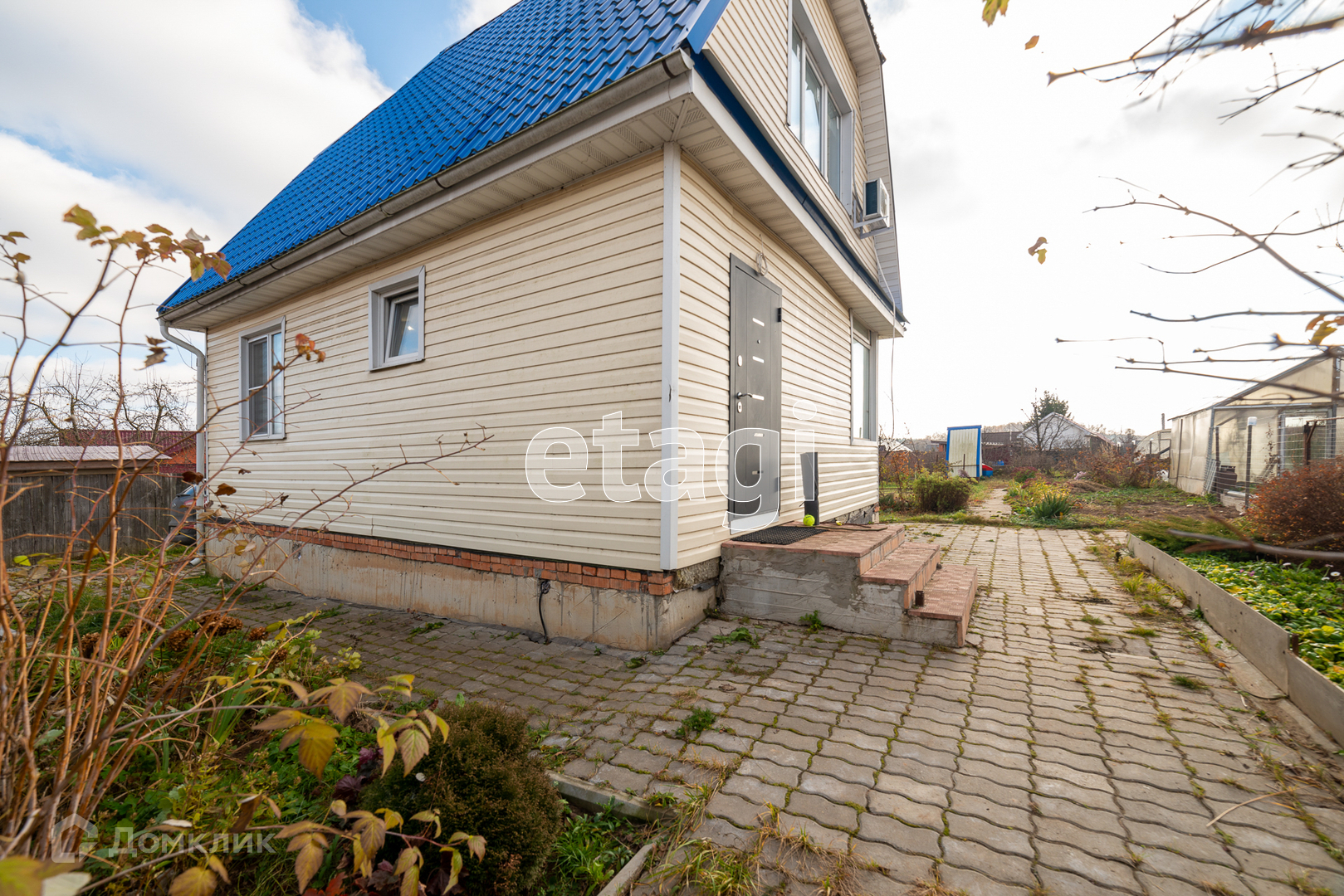 На участке садовые деревья, большой виноградник, малина, клубника. Есть теплица из поликарбоната.