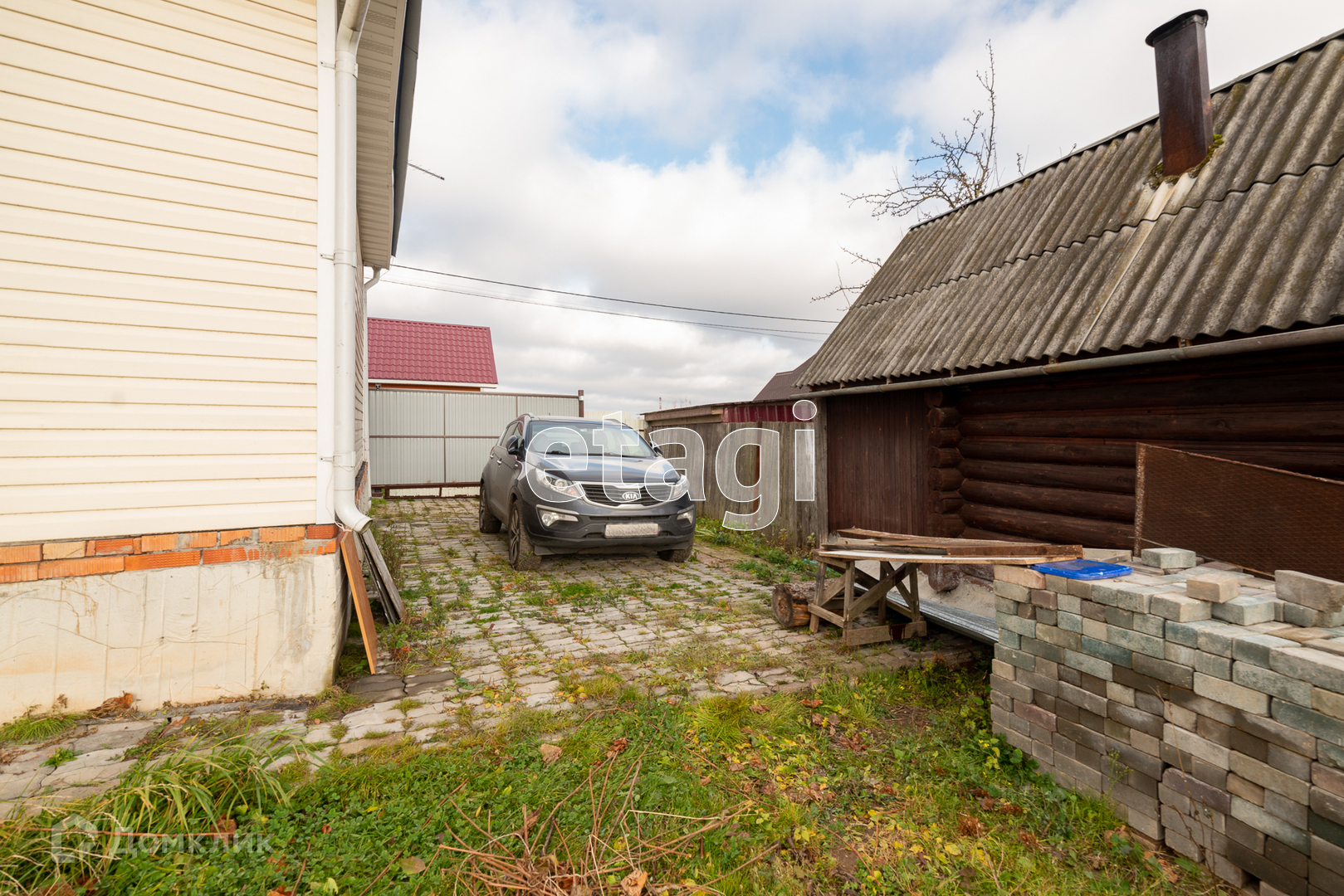Парковка на две машины, откатные ворота.