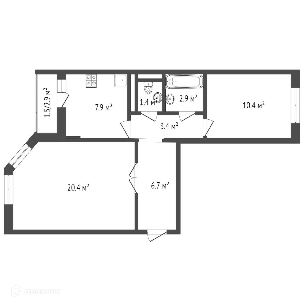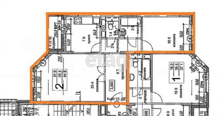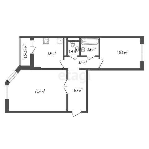 Общая площадь 54.8 м2