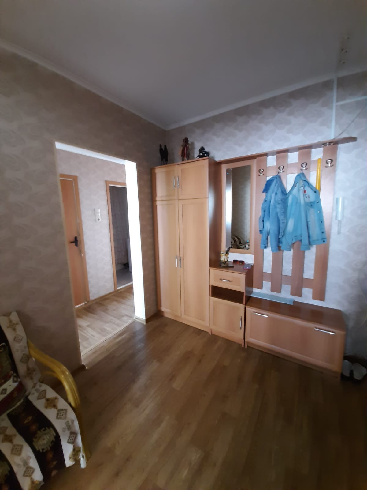 Имеется кладовая, оборудованная стеллажами. Установлена качественная и надёжная входная дверь. При продаже остается кухонный гарнитур и часть мебели.