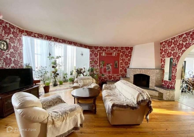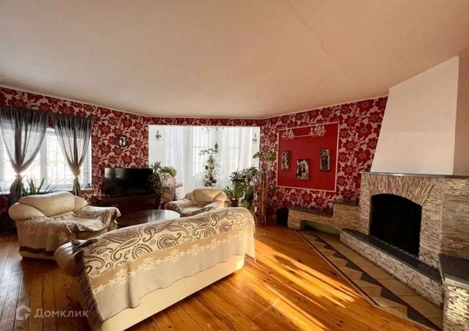 •в гостиной красивый камин из камня