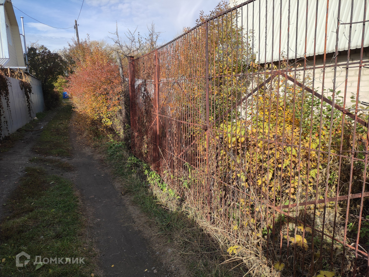 По периметру участок огорожен (сетка рабица) с железными распашными воротами для парковки автомобиля.