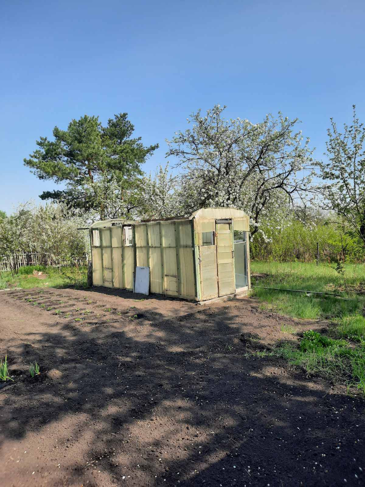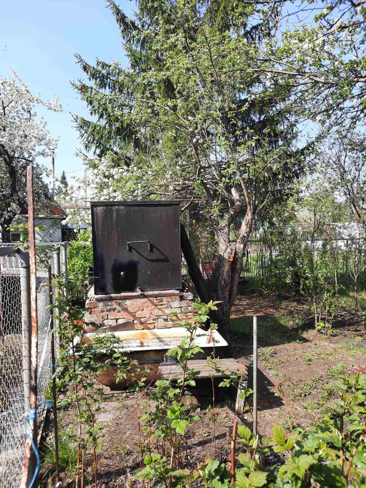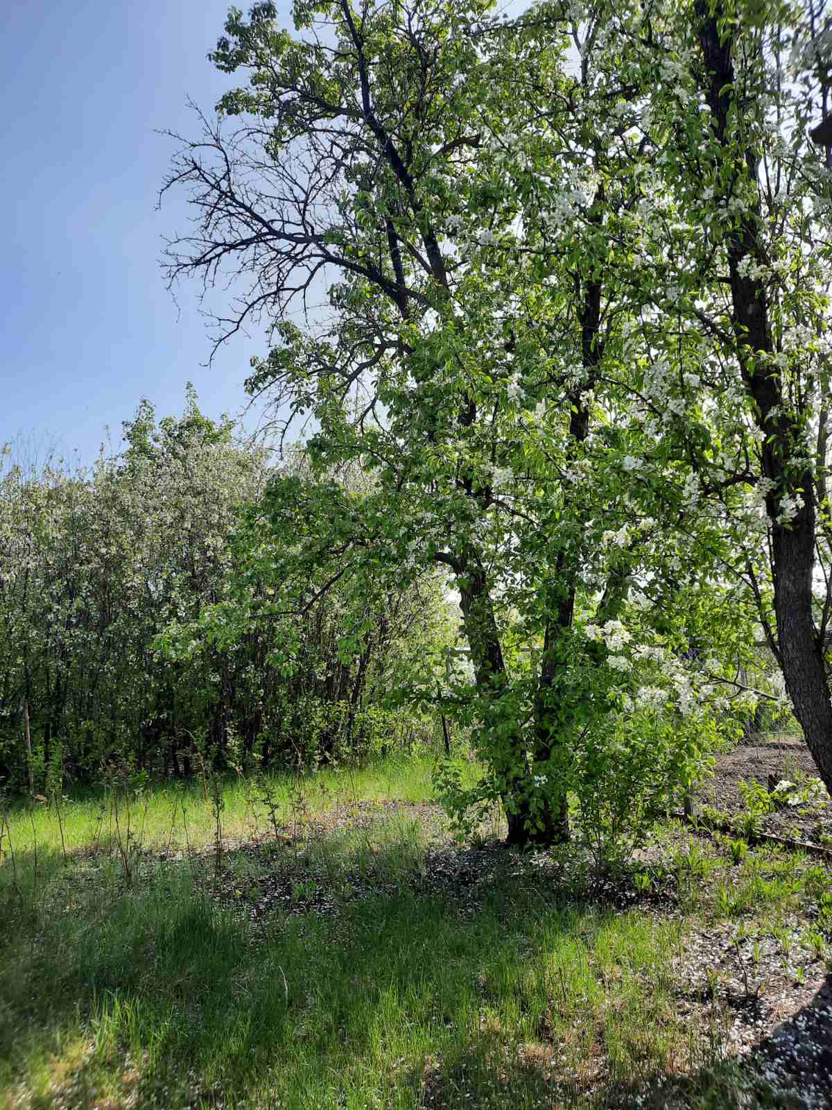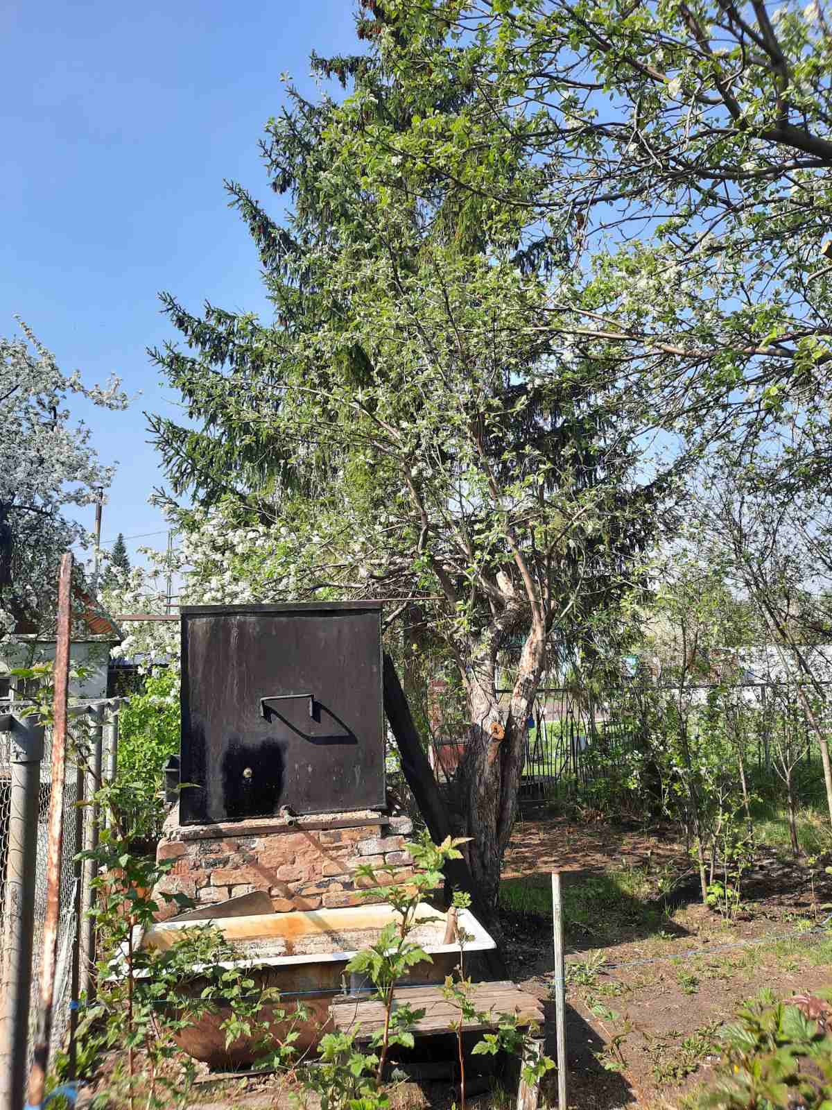 Сам участок прибран, в нужных местах зарос мятликом луговым (мягкий газон), есть взрослые плодовые деревья и кустарники.