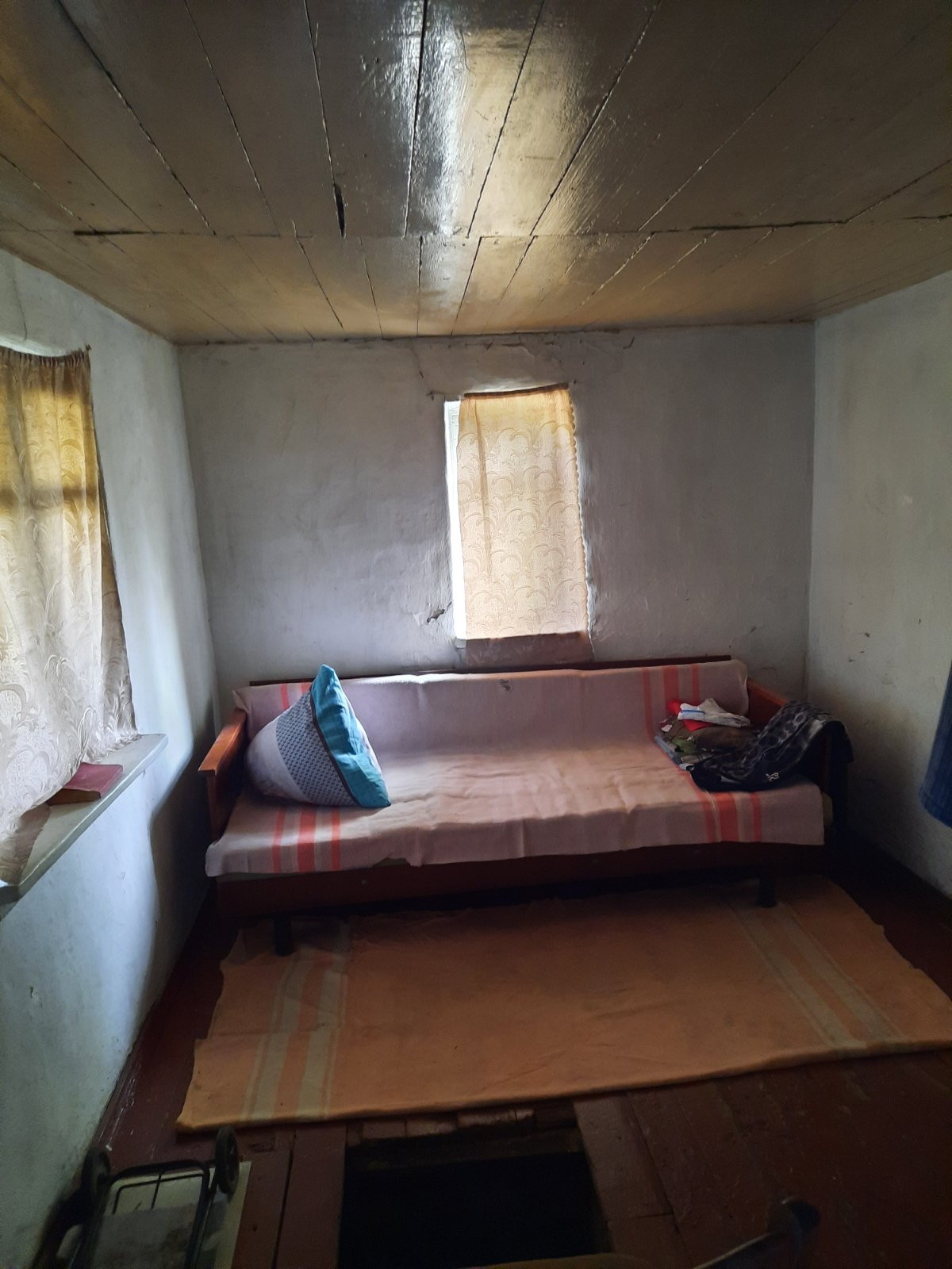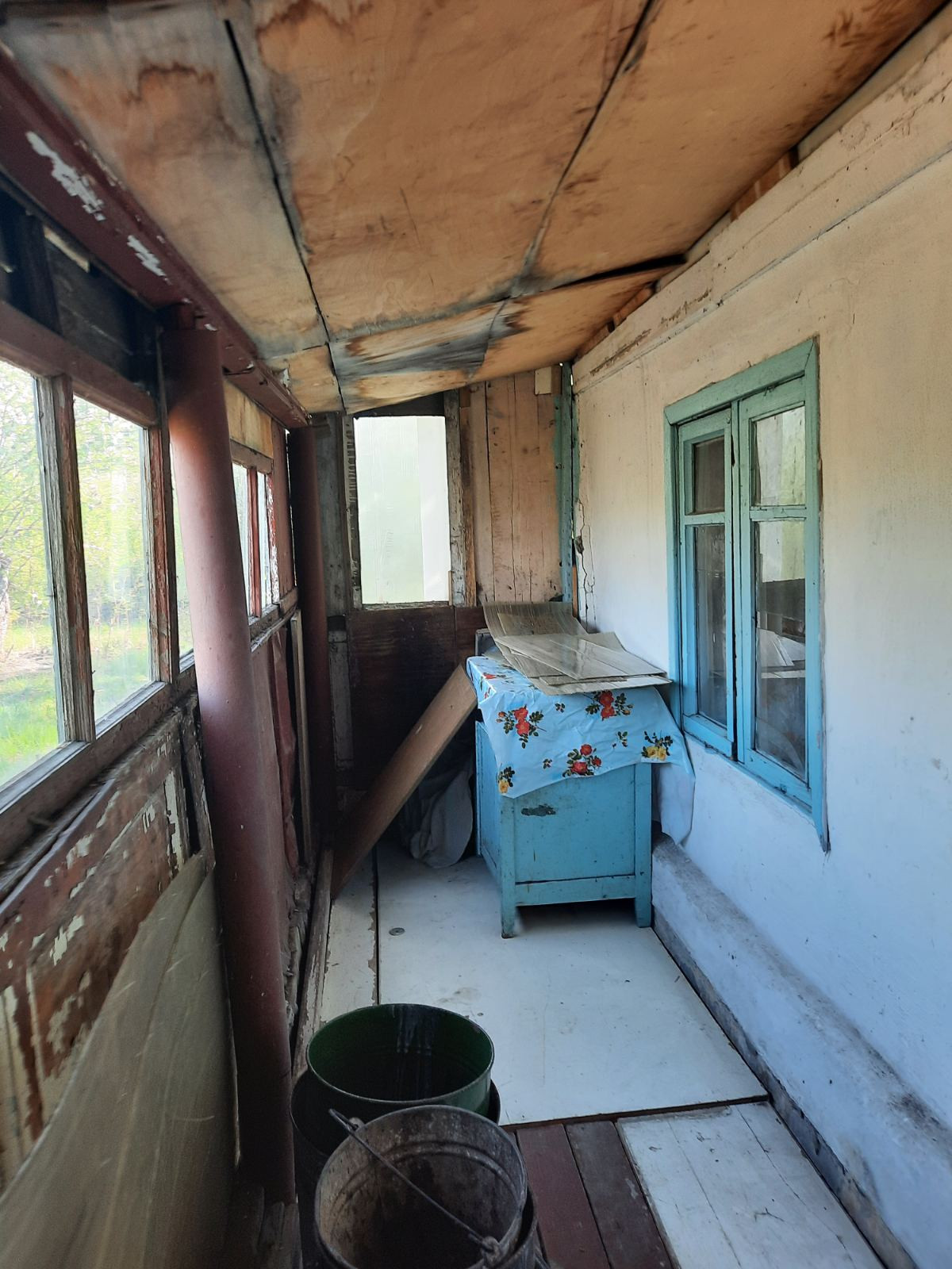 Дом из шлакоблока, веранда-дерево, в доме есть печка-работает исправно. На участке большая емкость для воды, колодец, воду подают 2 раза в неделю (на участке две врезки).