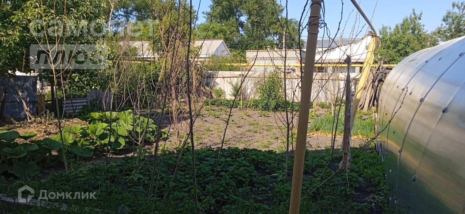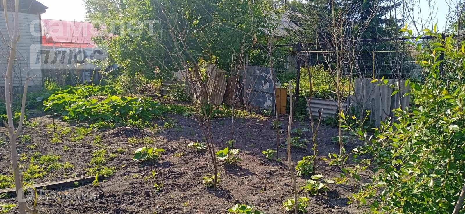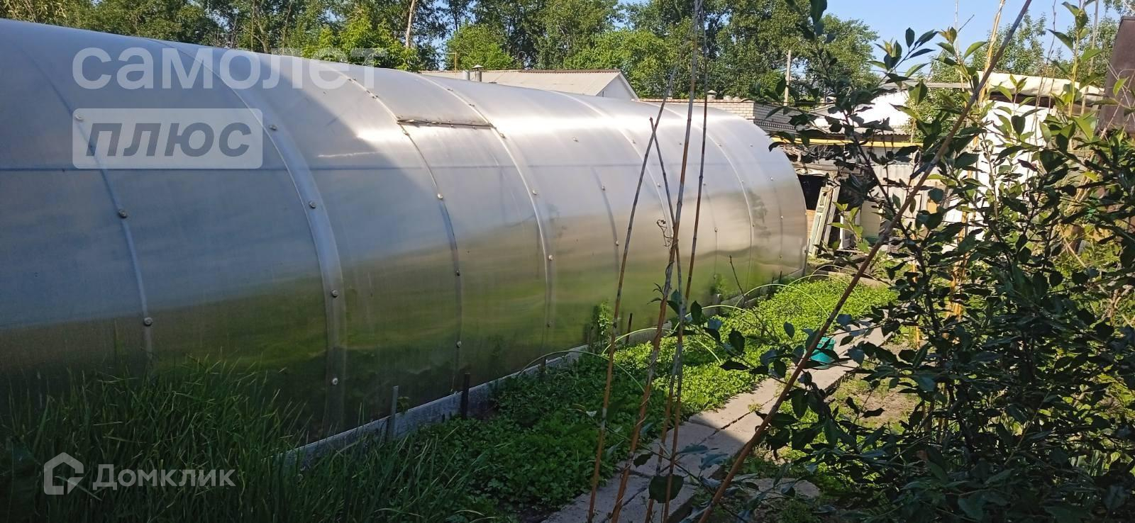 Участок в 5,5 соток обрабатывается, есть теплица 3*10 метров, растут плодоносящие деревья и кустарники, сделана система полива, накопительный бак из нержавейки. Цветущий палисадник под окном.