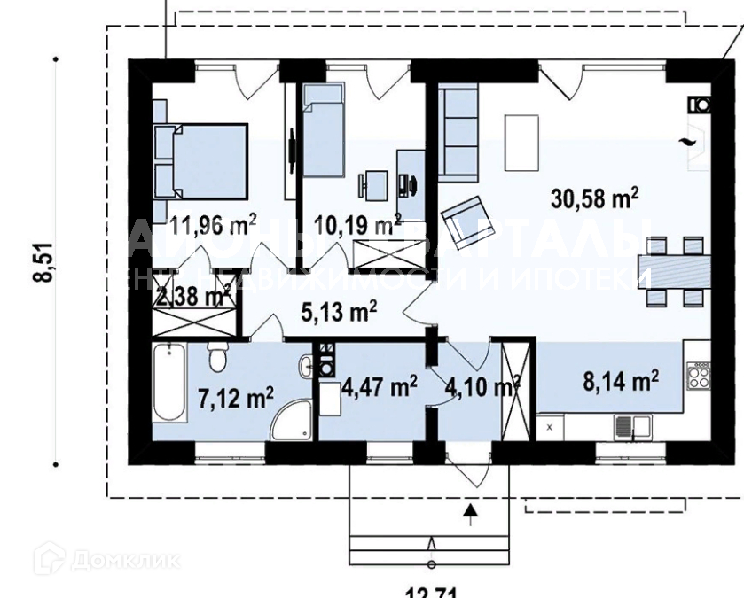 -СептикПри желании хозяев кухня может быть отделена от гостиной перегородкой или раздвижными дверьми;Просторная дневная зона При необходимости можно внести  изменения в проект дома.Просторное хоз помещение .