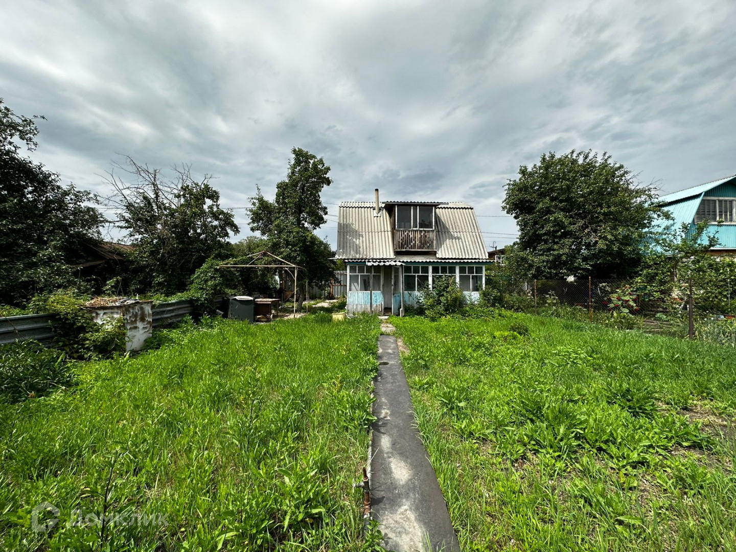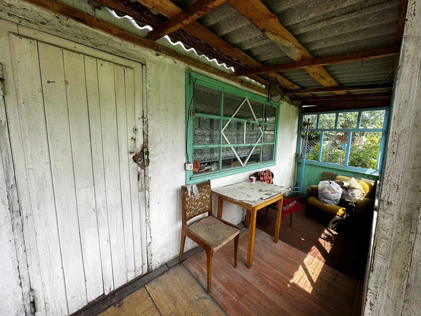 Пристроена веранда. Есть каркас для беседки.