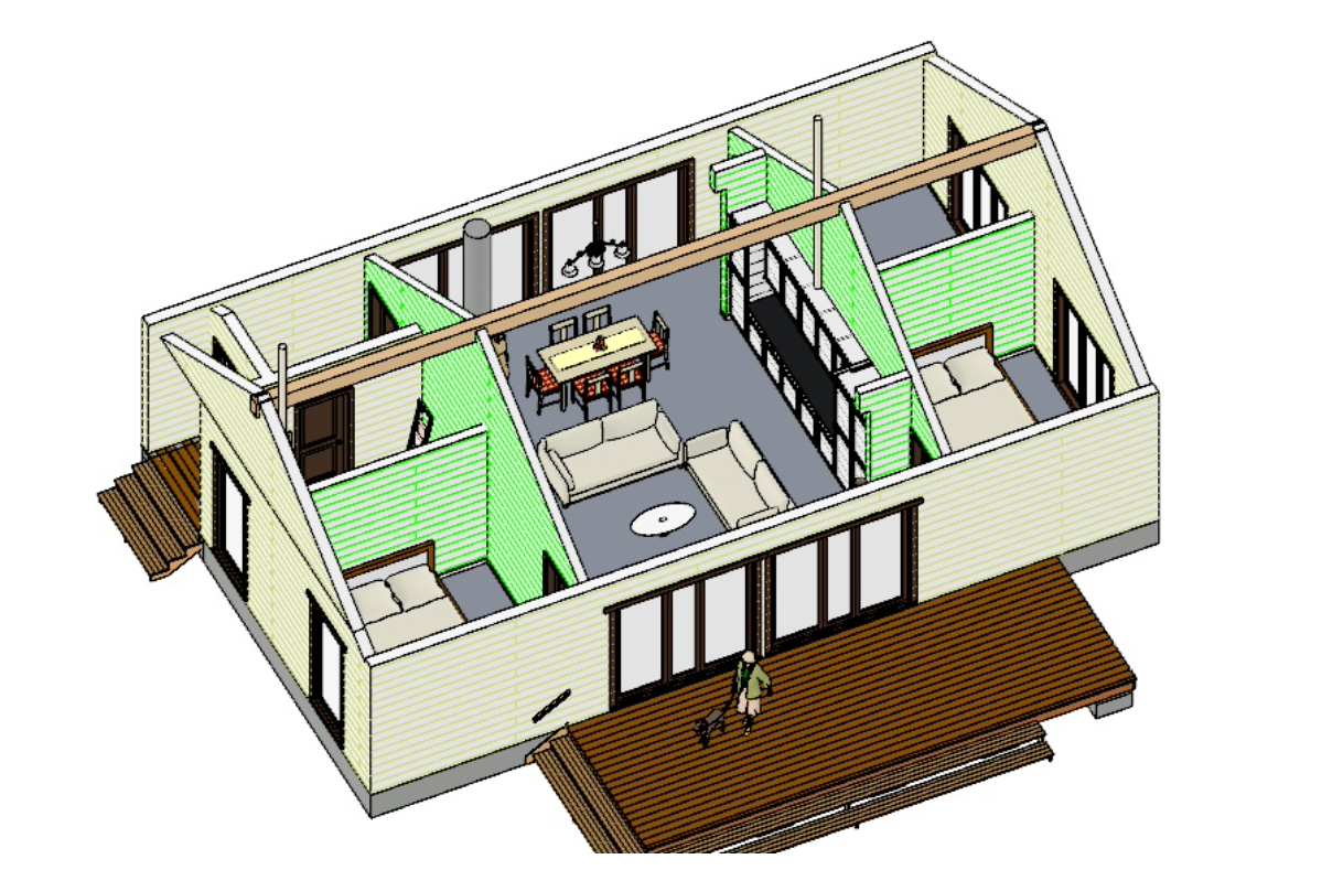 Три спальни. Просторная кухня-столовая соединенная с большим залом. Один санузел. Прихожая-тамбур.