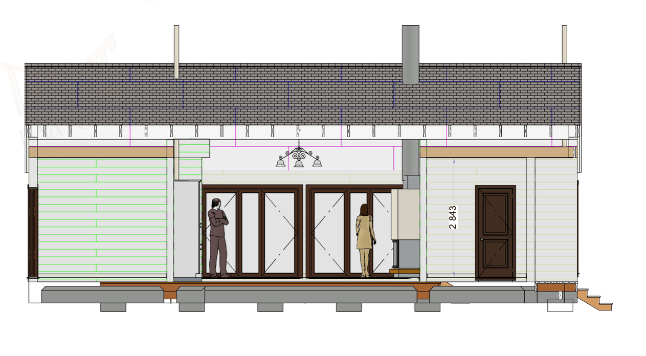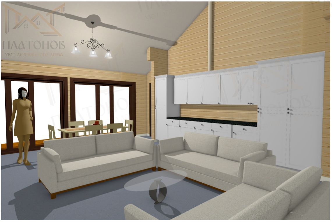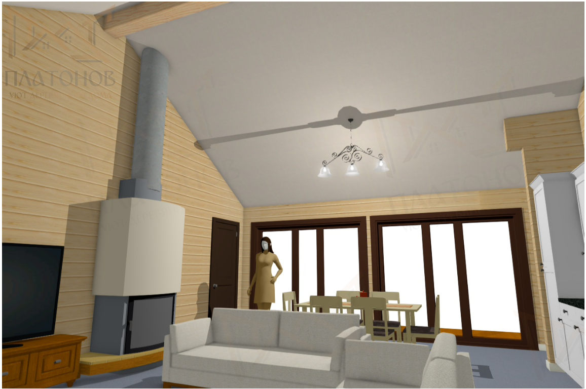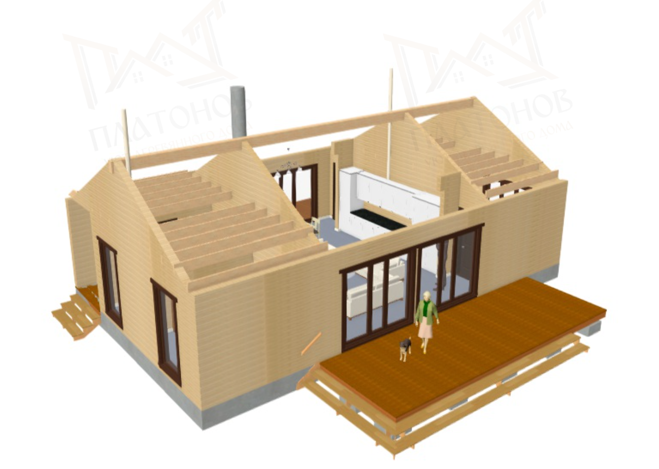 Рассчитывается в клееном профилированном брусе 200мм и 150мм перегородки.