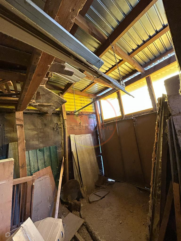 Построен из шлакоблока, фундамент бутовый камень, крыша из металлопрофиля.