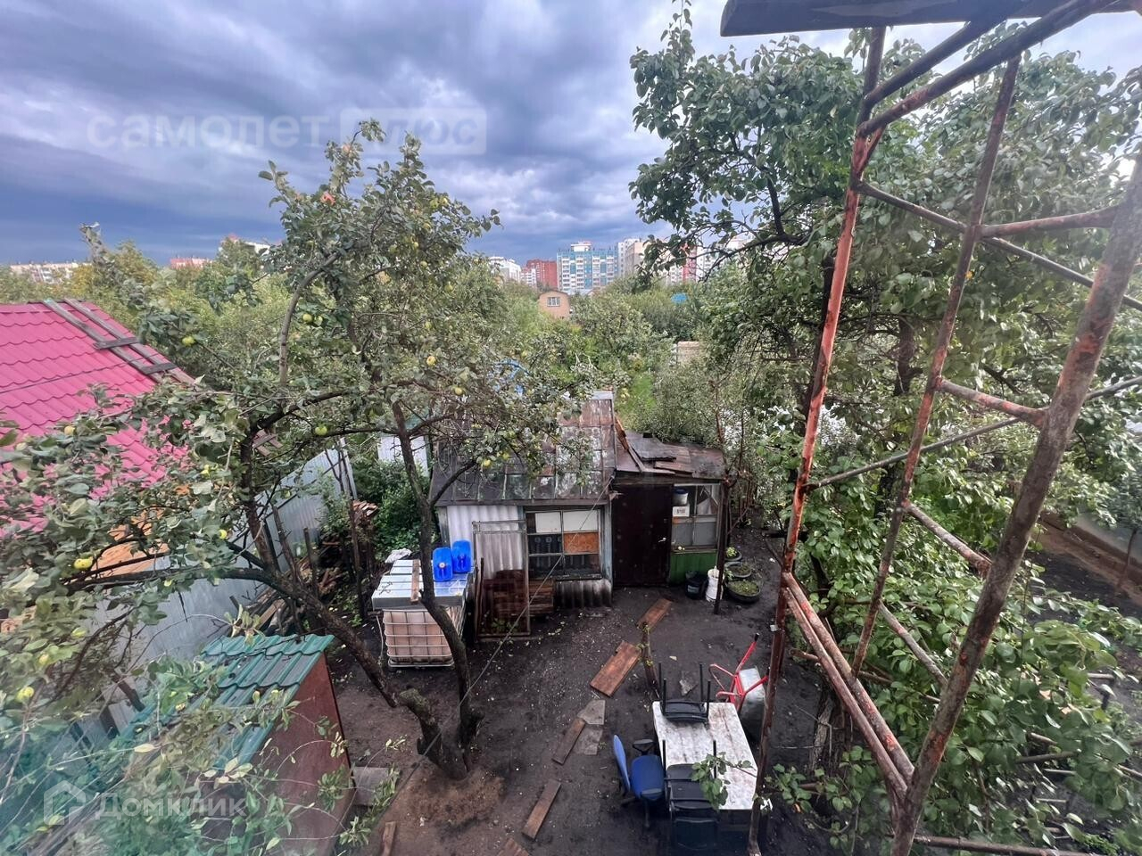 - На территории расположен небольшой огород и место для хранение инструментов.