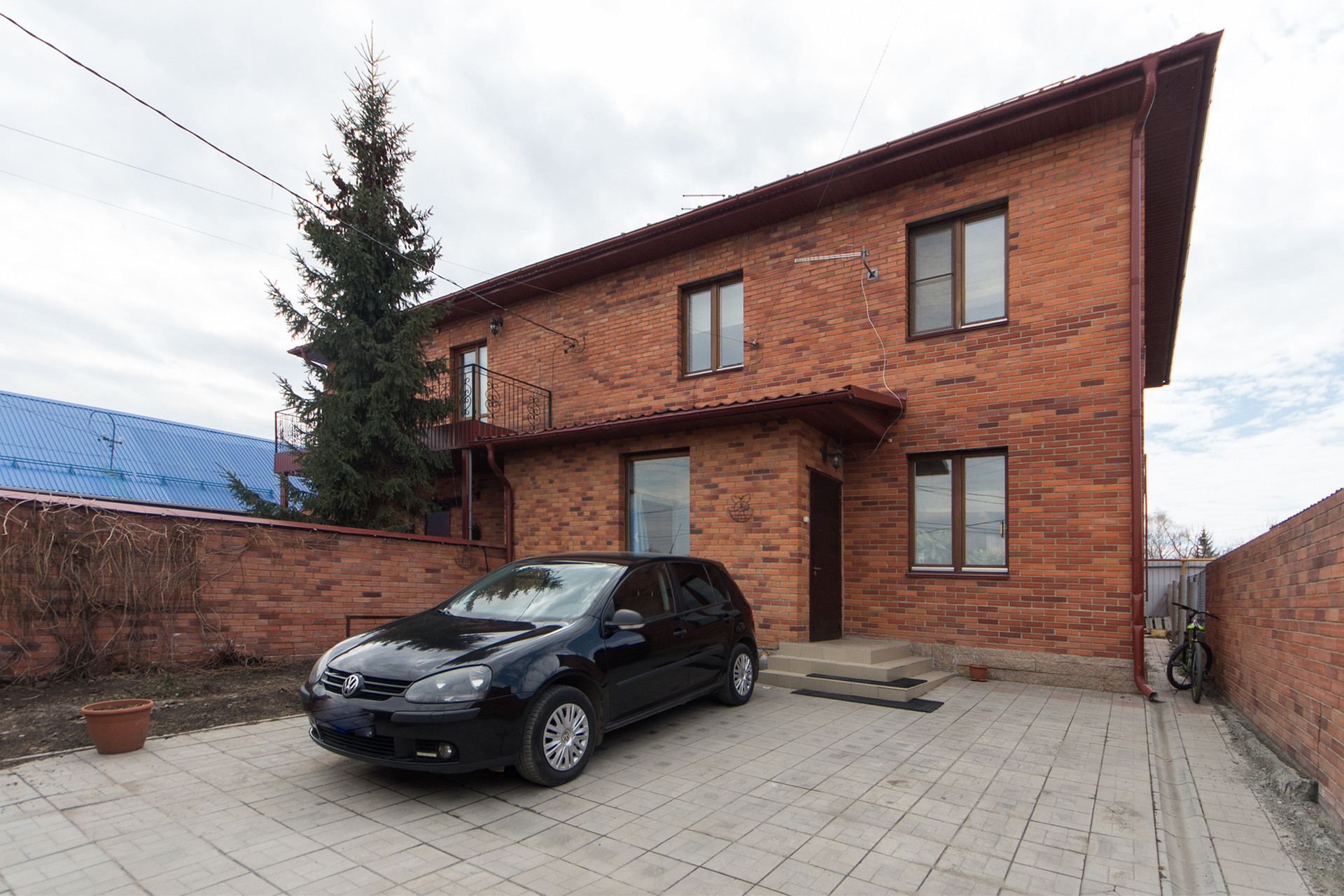 Дом полностью кирпичный, 2 этажа плюс мансарда(черновая отделка), построен из современных экологичных материалов.  Во дворе парковка на 2 машины.