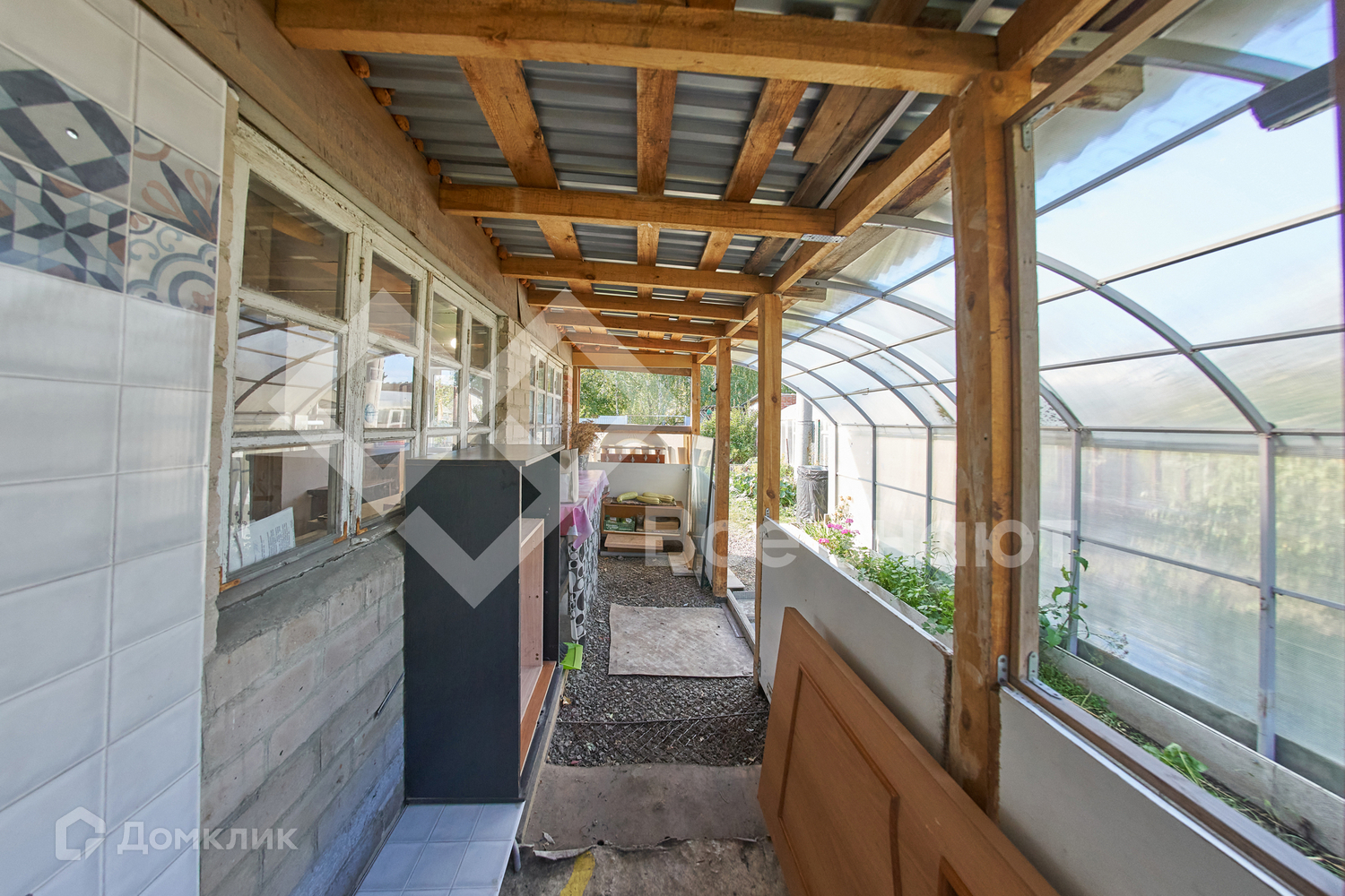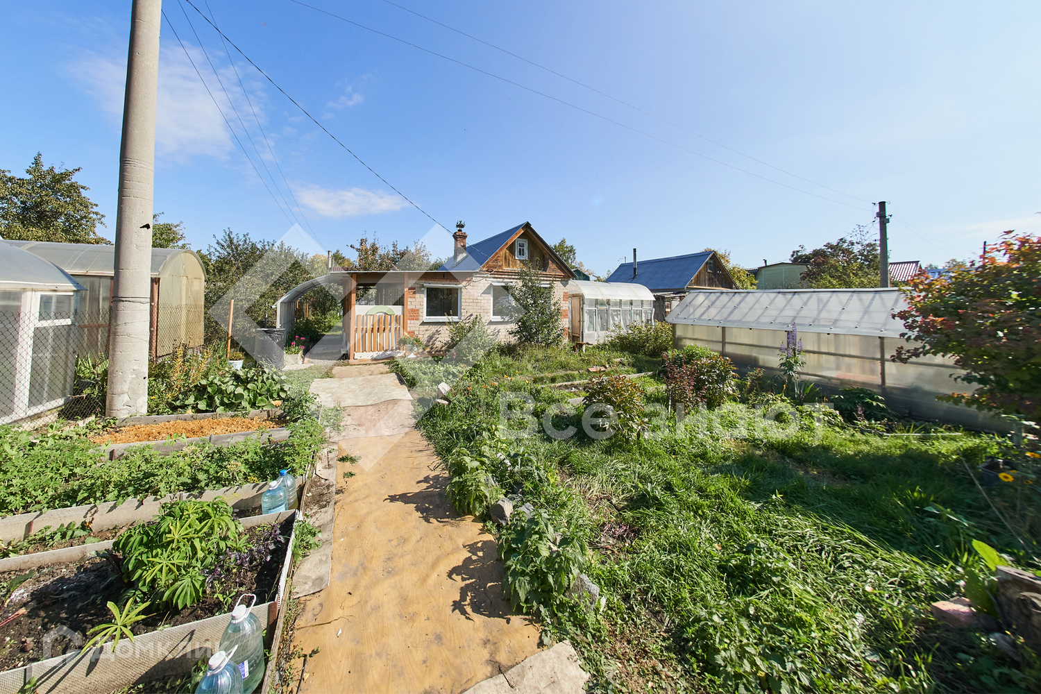 В доме печное отопление, подведено электричество, выполнена вся разводка по дому. На участке есть хоз. блок, туалет, теплица из поликарбоната и несколько парников, бак для воды.