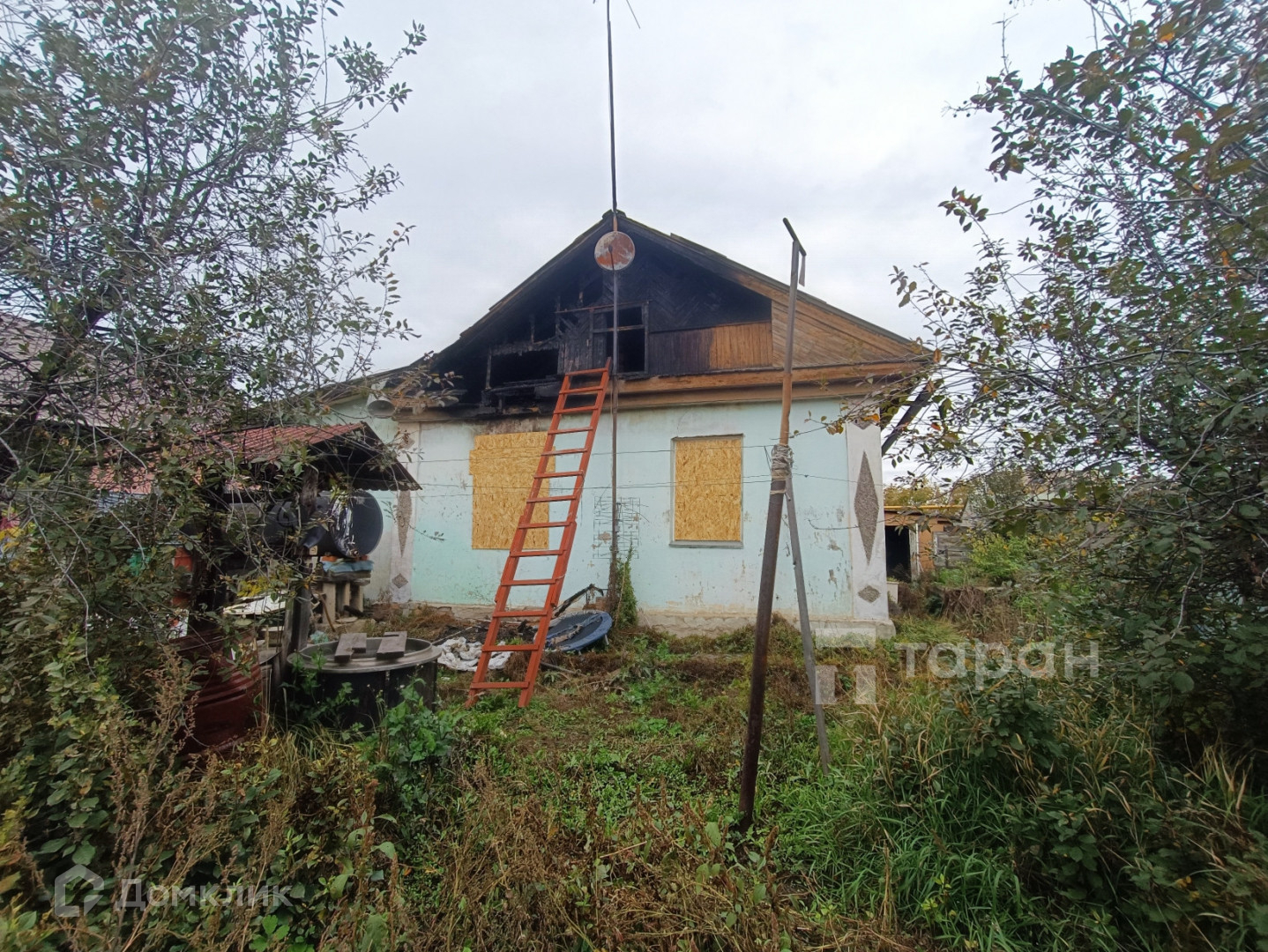 Важно: дом после пожара. Выгорела одна комната, частично пострадало перекрытие и кровля, закоптились остальные комнаты и пострадали окна. Нужен ремонт!